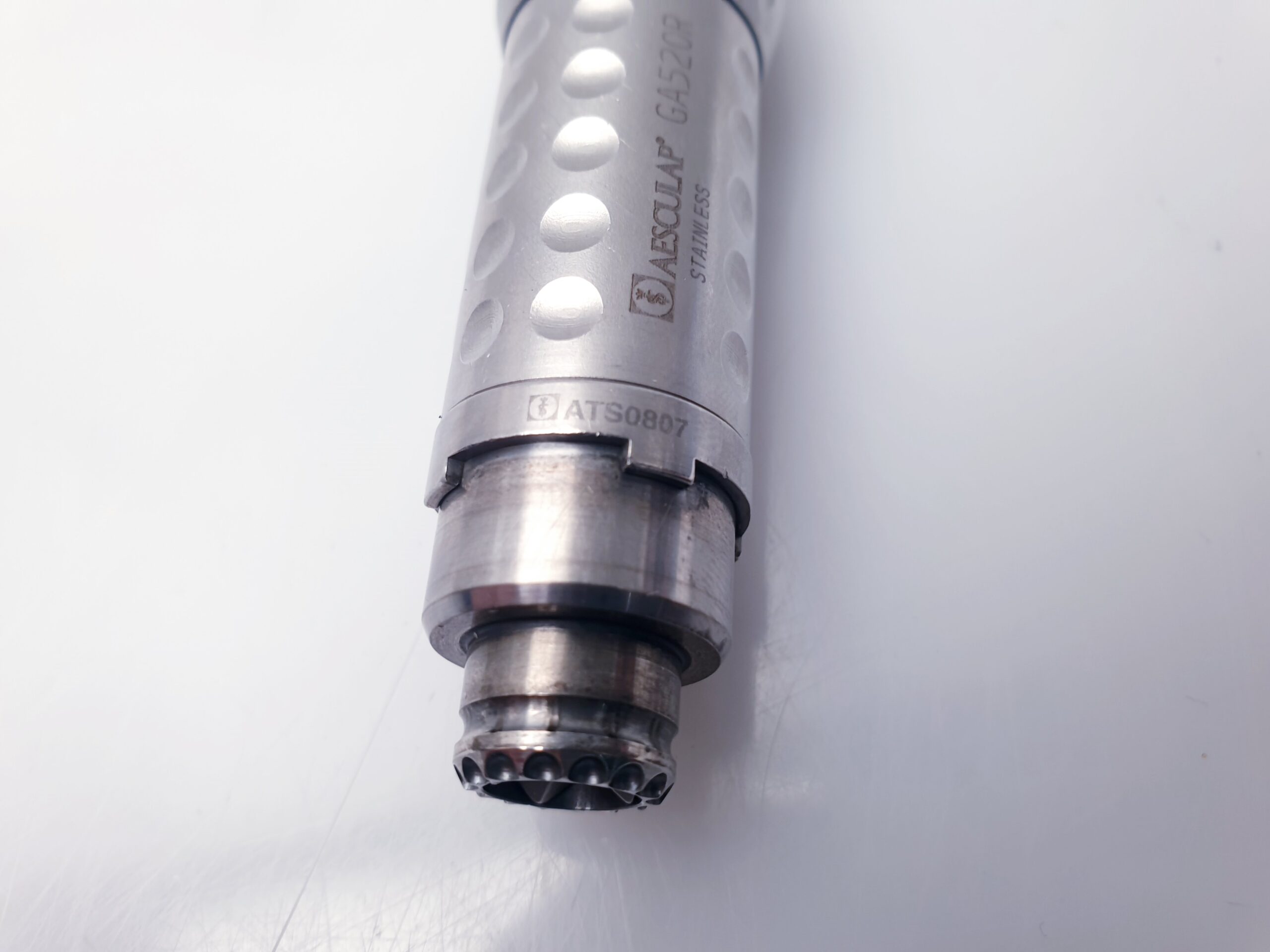 Die Bezeichnungen GA520R und GA 520 R beziehen sich auf denselben Aufsatztyp innerhalb des modularen Aesculap-Systems. Er dient als Schnittstelle zwischen dem Druckluftmotor und dem eigentlichen chirurgischen Werkzeug (z. B. Fräser oder Bohrer).