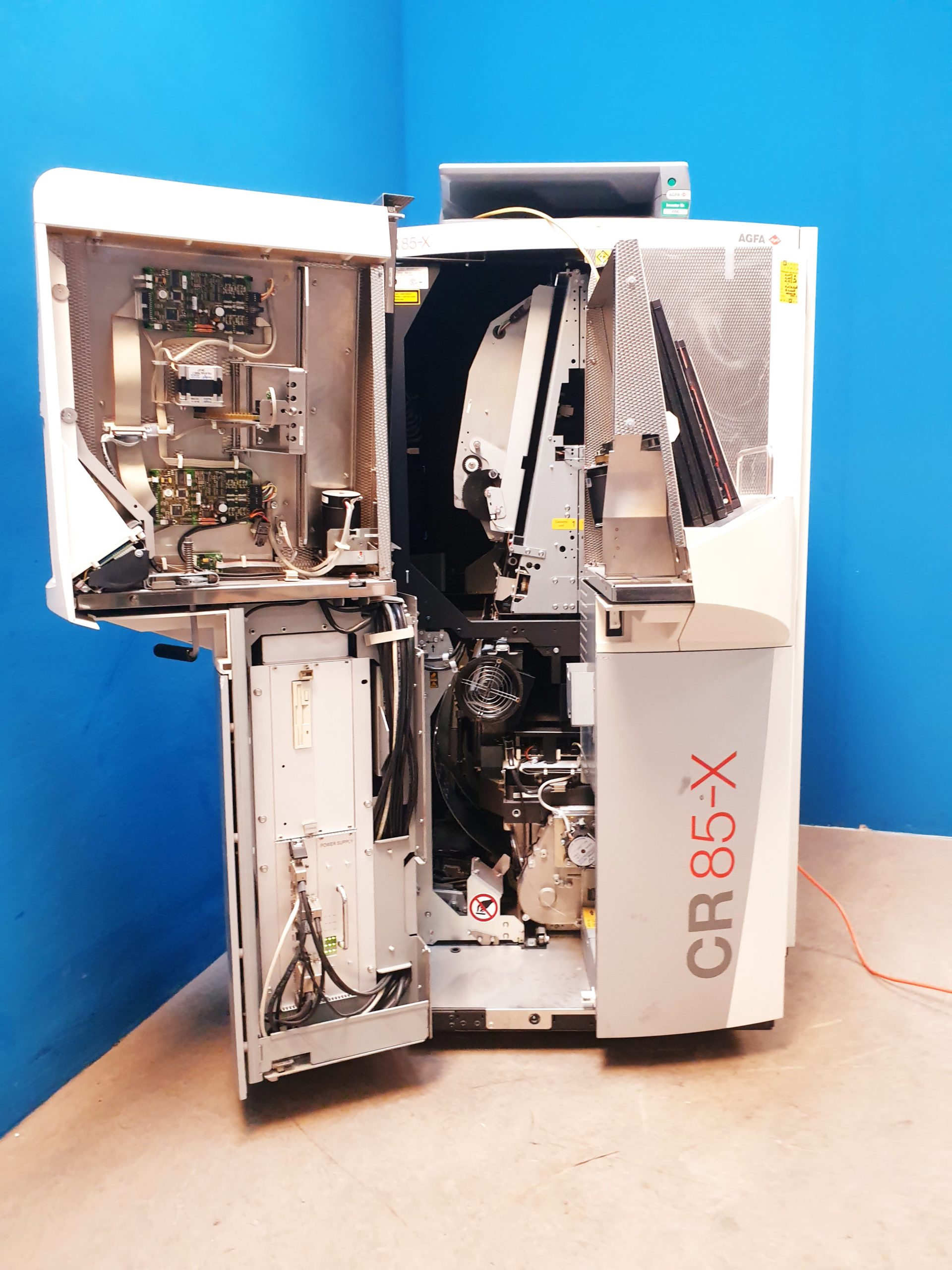Das AGFA CR 85-X ist ein Röntgen-Computertomografie-System, das für die digitale Bildgebung in der Radiologie entwickelt wurde. Es gehört zur Produktlinie der Computed Radiography (CR) Systeme von AGFA und wird häufig in medizinischen Einrichtungen eingesetzt, um Röntgenbilder zu erfassen und zu verarbeiten.