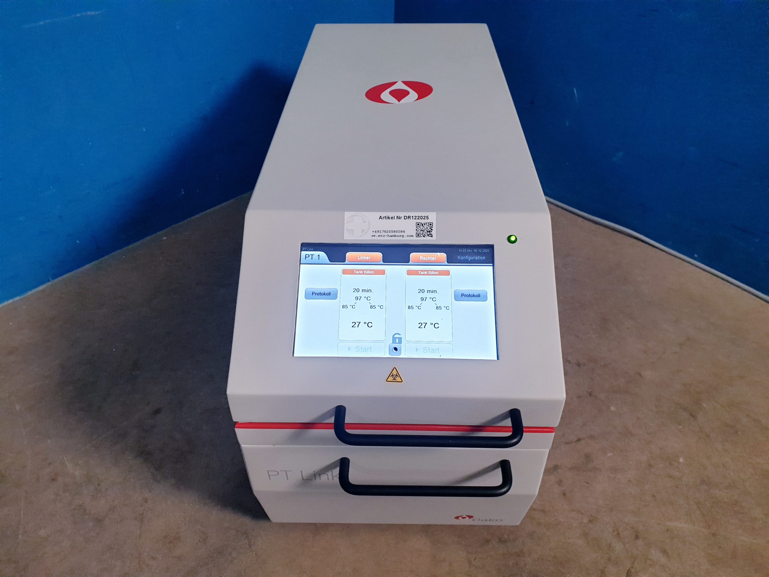 Das Agilent Dako PT Link PT200 ist ein fortschrittliches Gerät zur automatisierten Vorbehandlung von histologischen Gewebeproben. Es wurde speziell für die Verwendung in der Immunhistochemie (IHC) und In-situ-Hybridisierung (ISH) entwickelt und erleichtert die Standardisierung sowie Reproduzierbarkeit von Vorbehandlungsschritten.