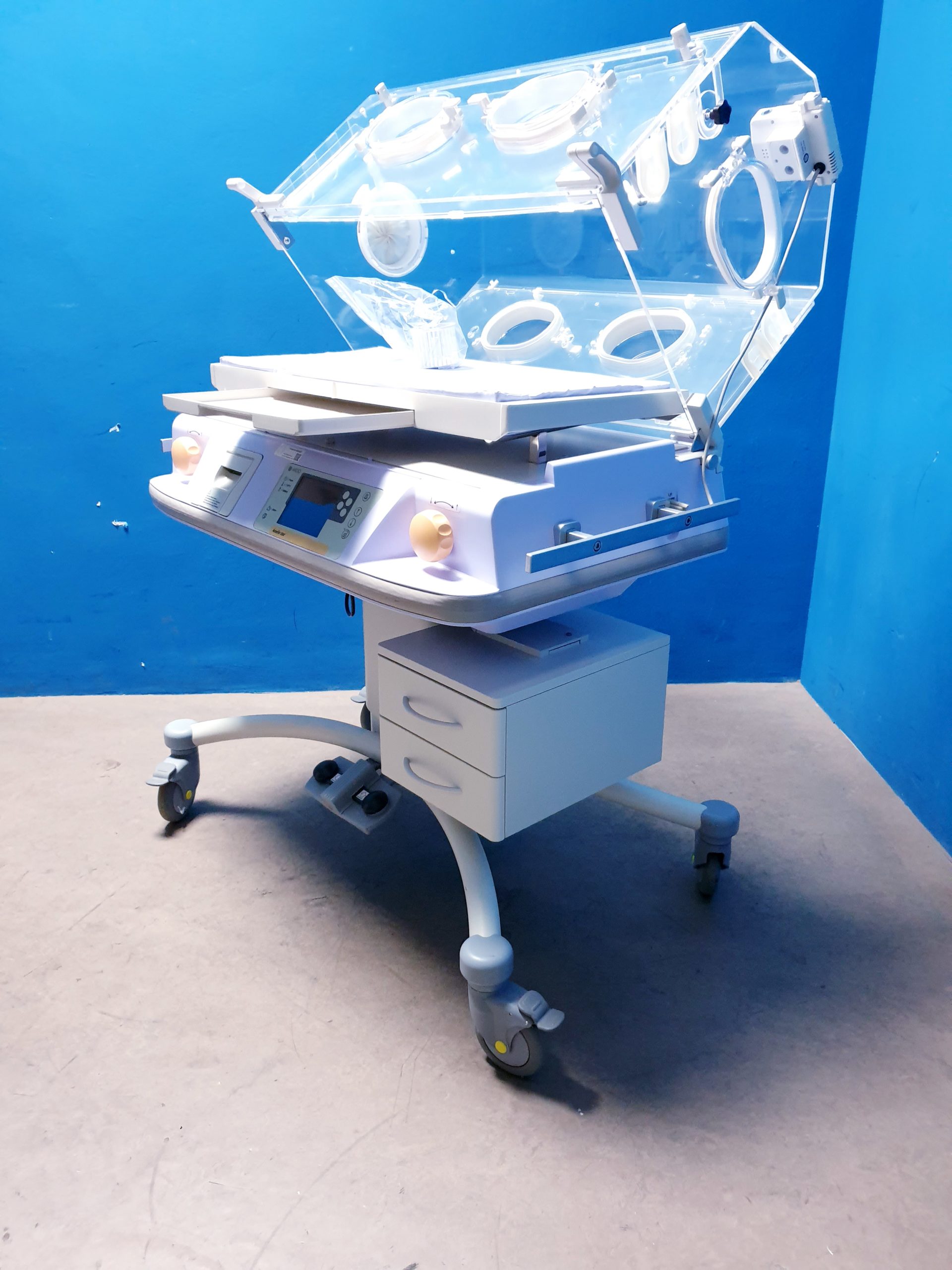 - Mobilität: Der Inkubator ist mit robusten Rollen ausgestattet, die einen sicheren und flexiblen Transport innerhalb der Klinik erlauben.