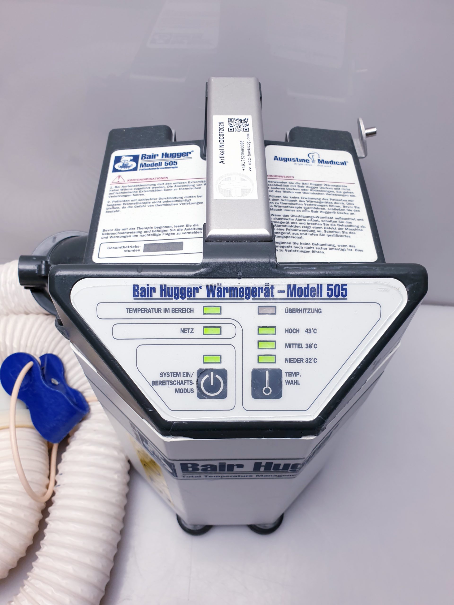 Das Bair Hugger Modell 505 Patientenwärmesystem ist ein hochmodernes, klinisch erprobtes Gerät zur aktiven Wärmeerhaltung von Patienten während chirurgischer Eingriffe und in der perioperativen Versorgung. Ziel ist die Vermeidung von perioperativer Hypothermie, welche mit zahlreichen Komplikationen wie erhöhtem Blutverlust, Infektionsrisiko und verlängerten Krankenhausaufenthalten verbunden ist.