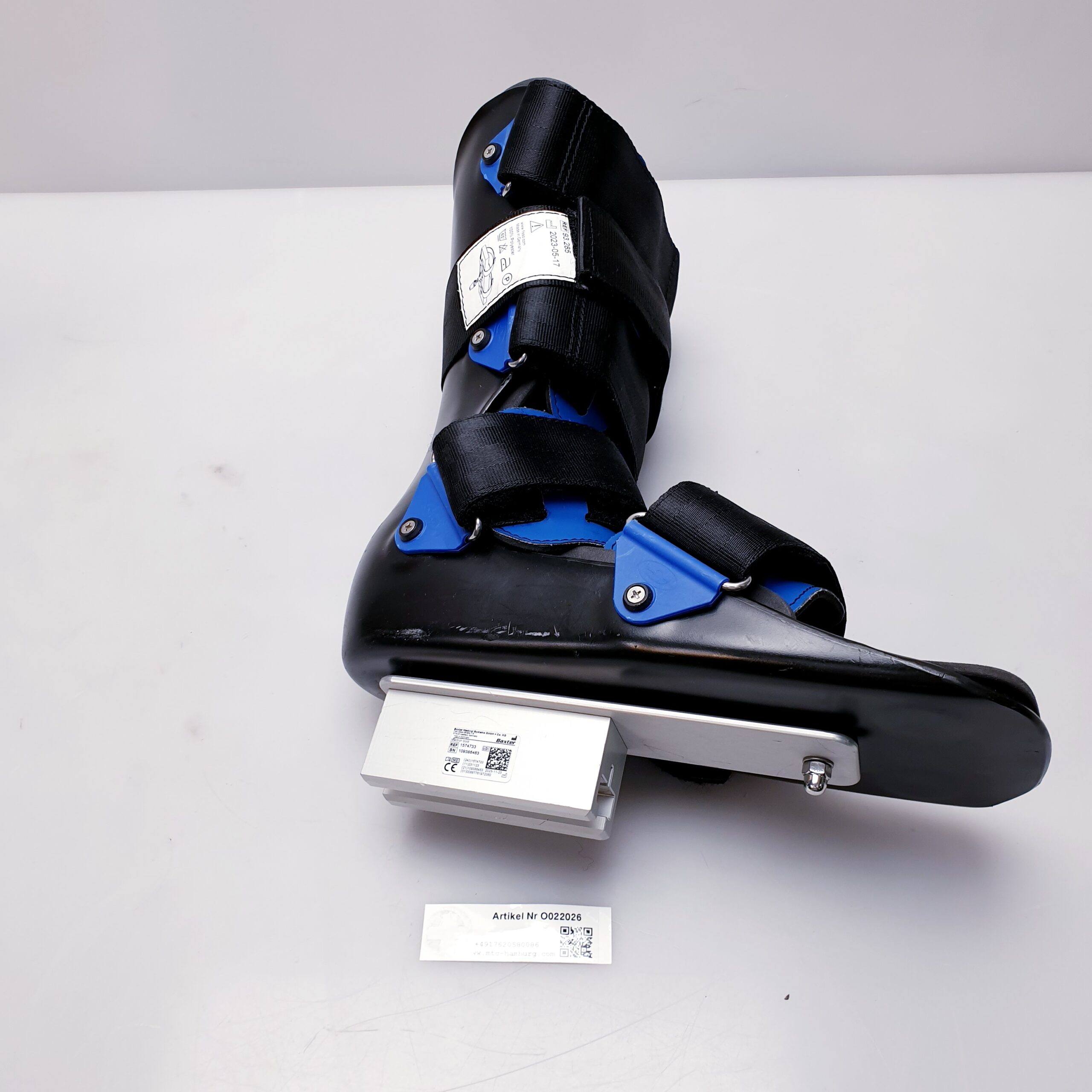 Der Baxter Hillrom Traction Boot (oft unter der Marke Allen Medical geführt) ist ein spezialisierter Traktionsschuh für orthopädische Eingriffe, insbesondere bei Hüftfrakturen und Traumata. Die Teilenummer 1574733 bezieht sich laut Fachverzeichnissen auf eine zugehörige Doppelgelenkstrebe (Double joint strut), während die REF 93.285 die Kennzeichnung für das Traktionsschuh-Modell selbst ist.