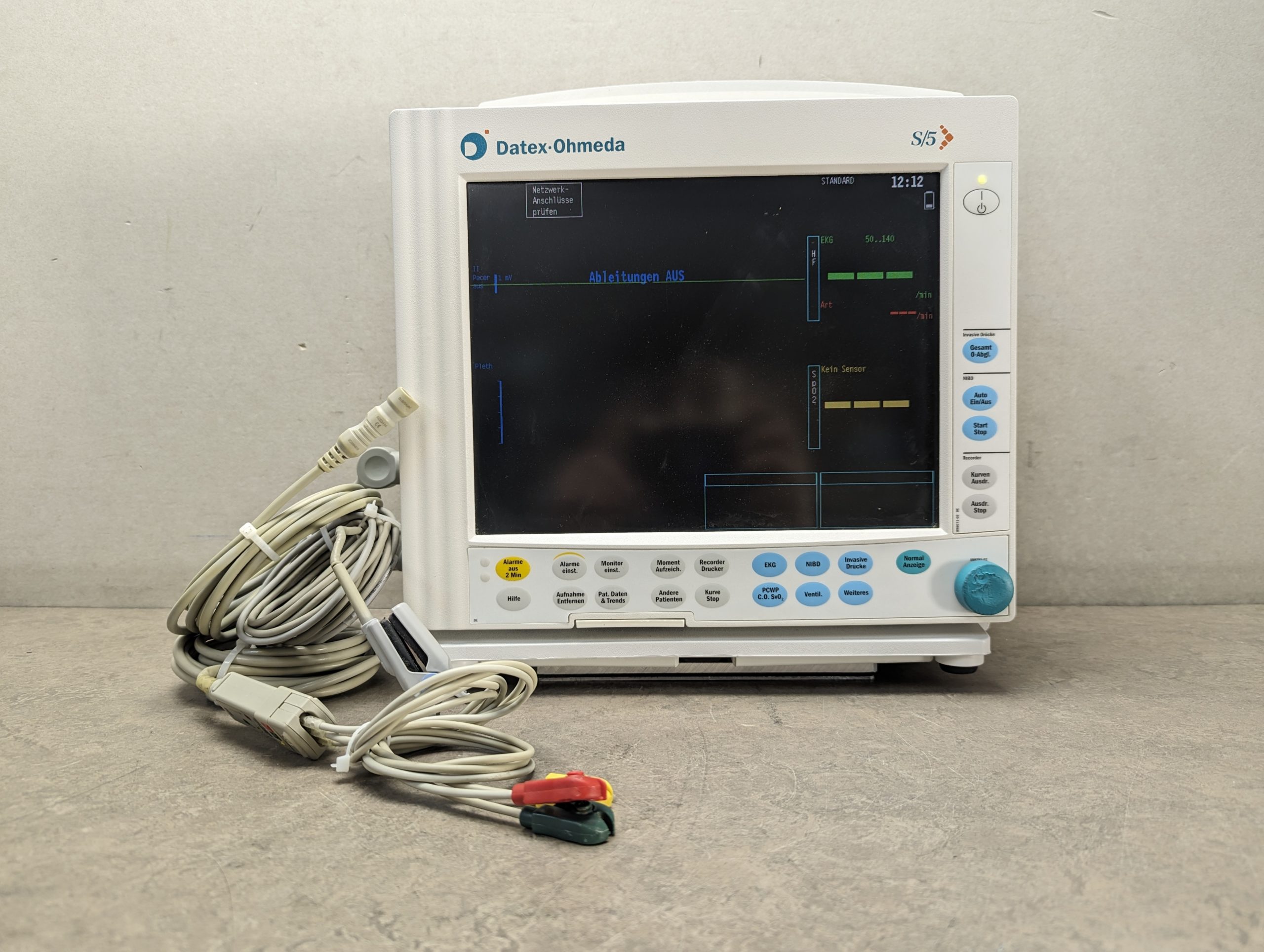 Fazit: Der Datex Ohmeda F-CM1 S5 Überwachungsmonitor mit Zubehör stellt eine professionelle Lösung für die umfassende Überwachung vitaler Patientendaten dar. Seine vielfältigen Funktionen, die ergonomische Bedienbarkeit und die hohe Genauigkeit machen ihn zur ersten Wahl für medizinisches Fachpersonal, das Wert auf Sicherheit und Effizienz legt.