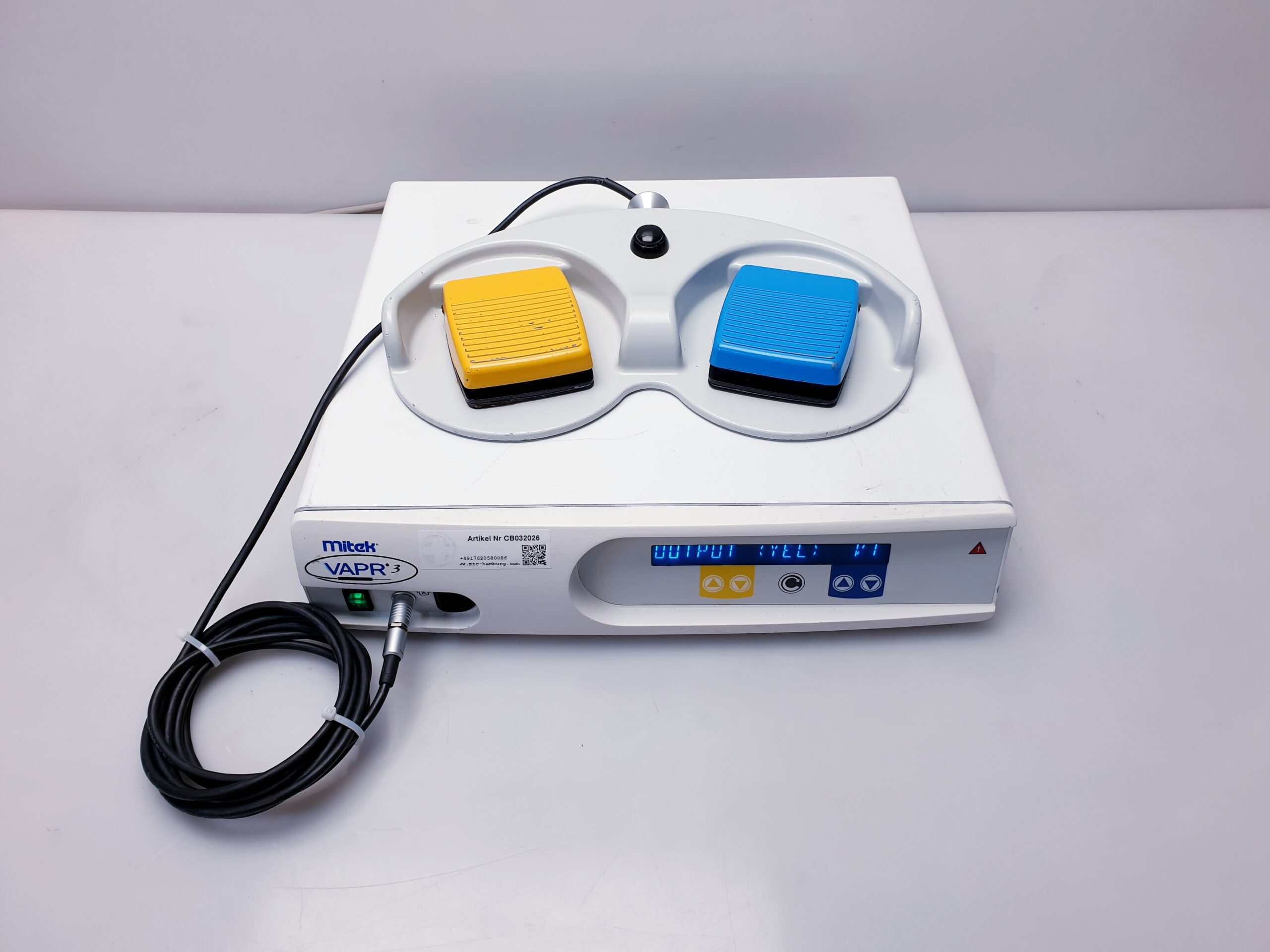 Der DePuy Mitek VAPR 3 ist ein Hochfrequenzgenerator, der in der arthroskopischen Chirurgie und anderen minimal-invasiven Verfahren eingesetzt wird. Er wird häufig zur Gewebeablation, Koagulation und zur Unterstützung bei chirurgischen Eingriffen verwendet. Hier sind einige der Hauptmerkmale und Vorteile des VAPR 3 Generators sowie der Fußsteuerung (Foot Control):