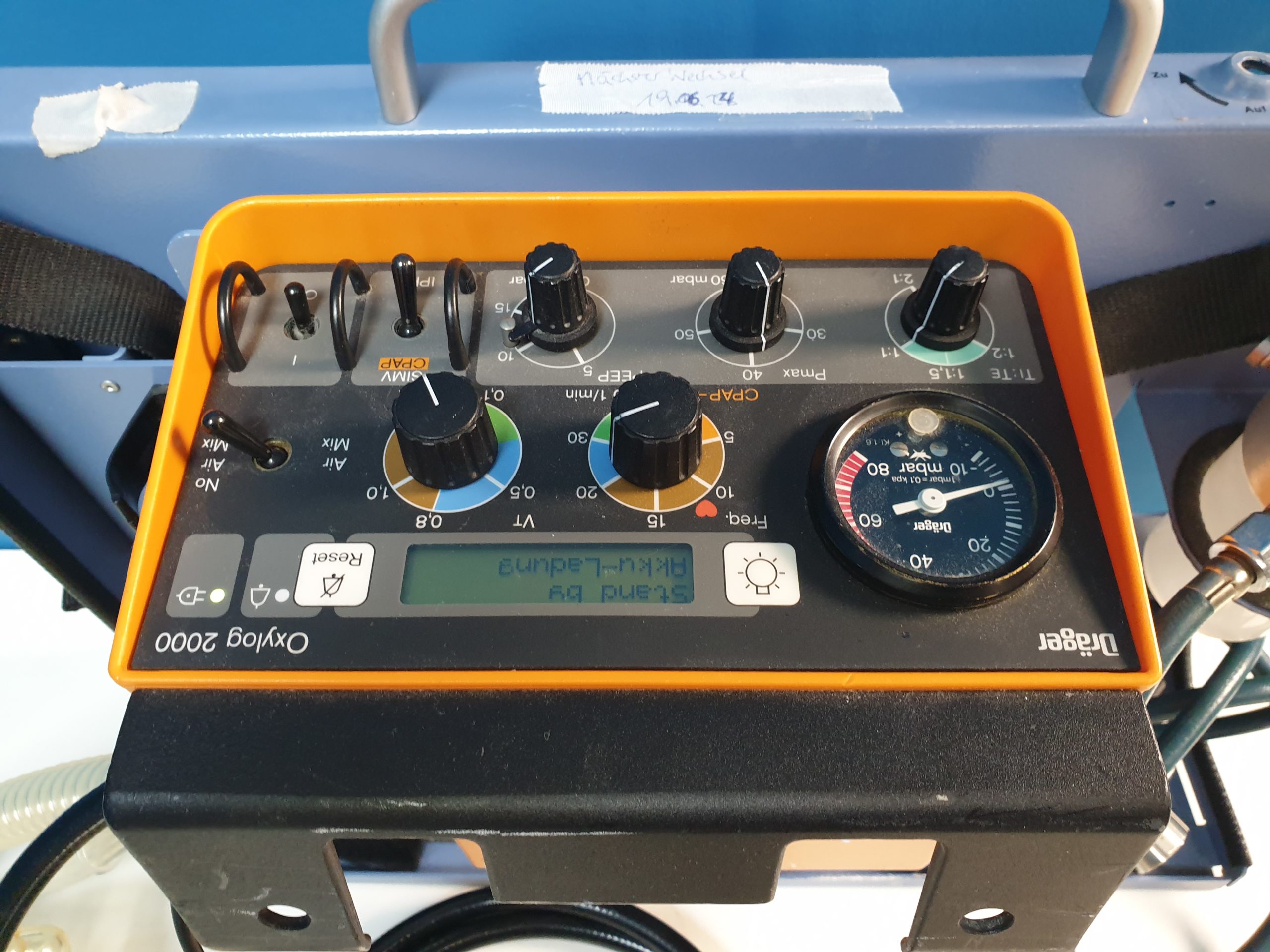 - Sicherheitsfunktionen: Das Oxylog 2000 verfügt über verschiedene Sicherheitsmechanismen, um sicherzustellen, dass der Patient während der Beatmung optimal versorgt wird. Dazu gehören Alarme für niedrigen Druck, hohe Atemfrequenz und andere kritische Parameter.