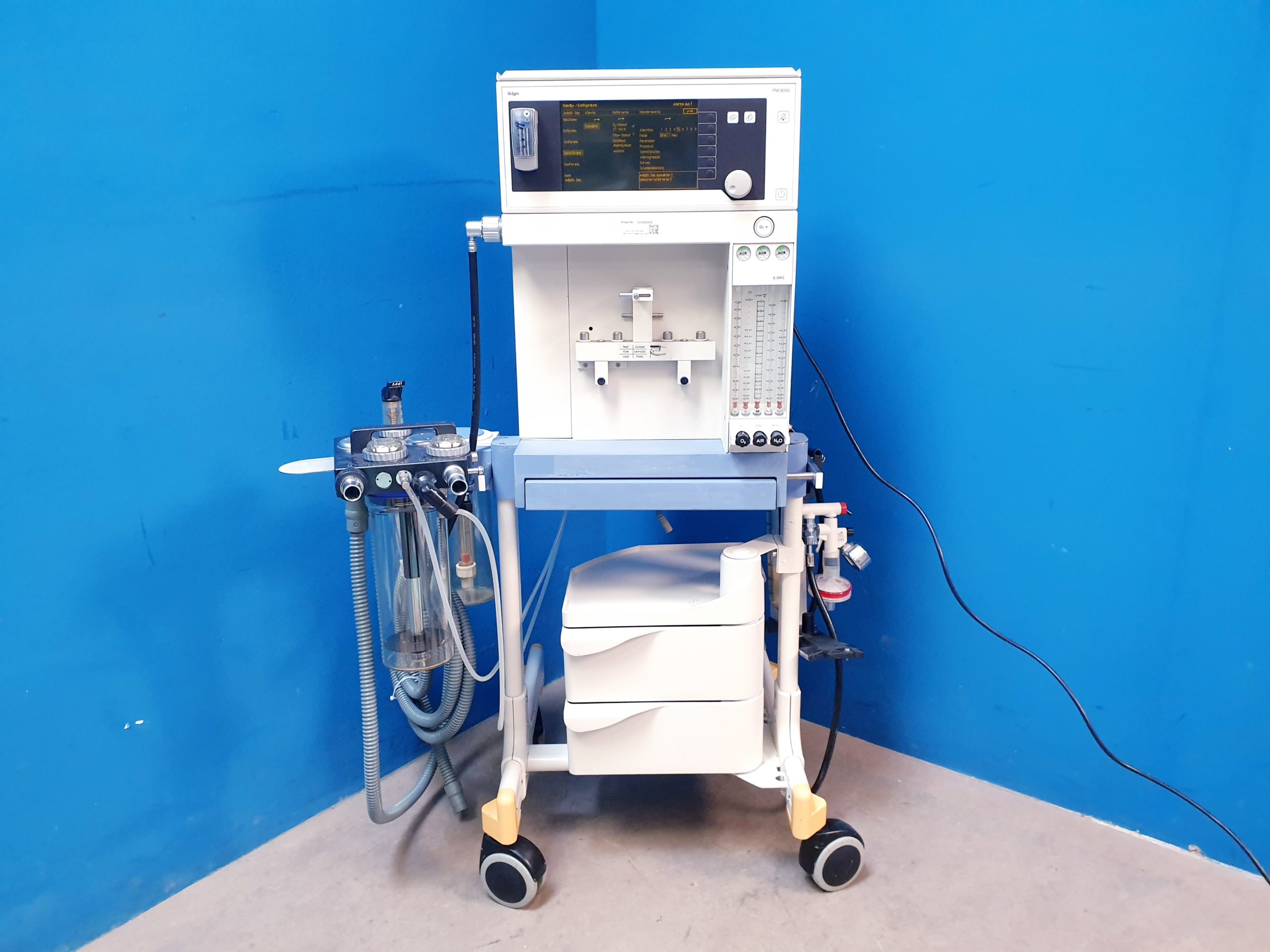 Dräger Oxator – Gestell / Fahrbarer Wagen / Schubladenschrank für Narkosegerät mit Flaschegestell