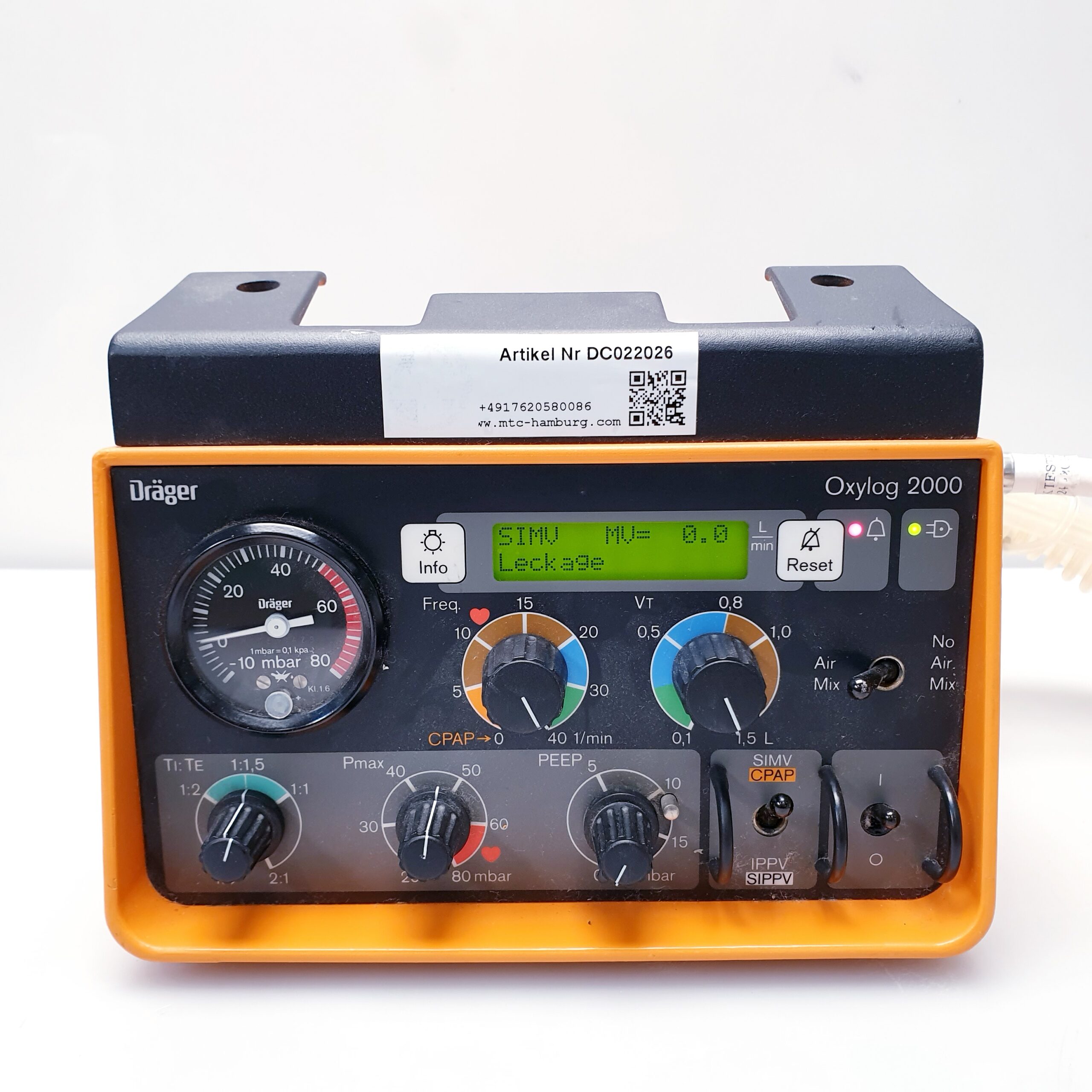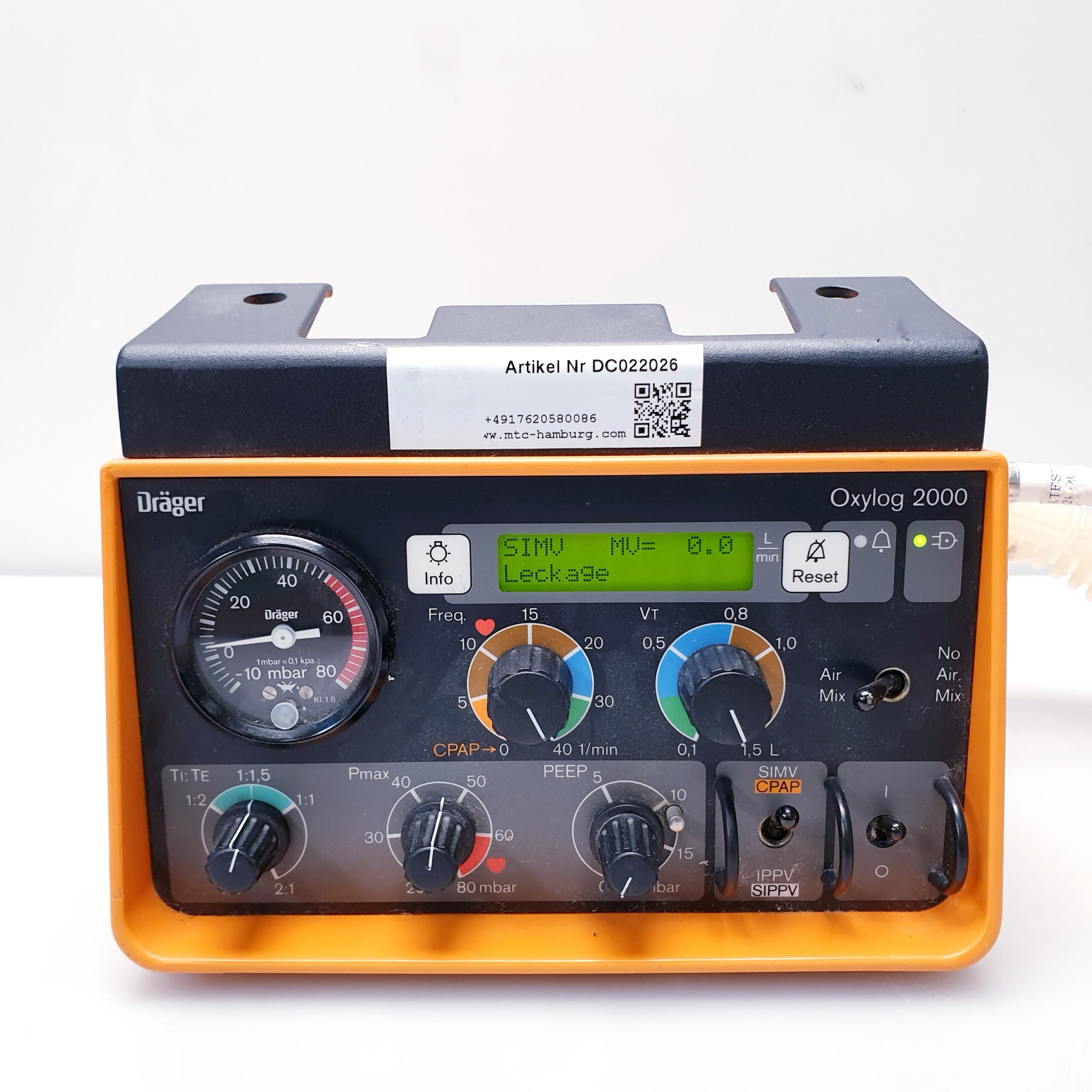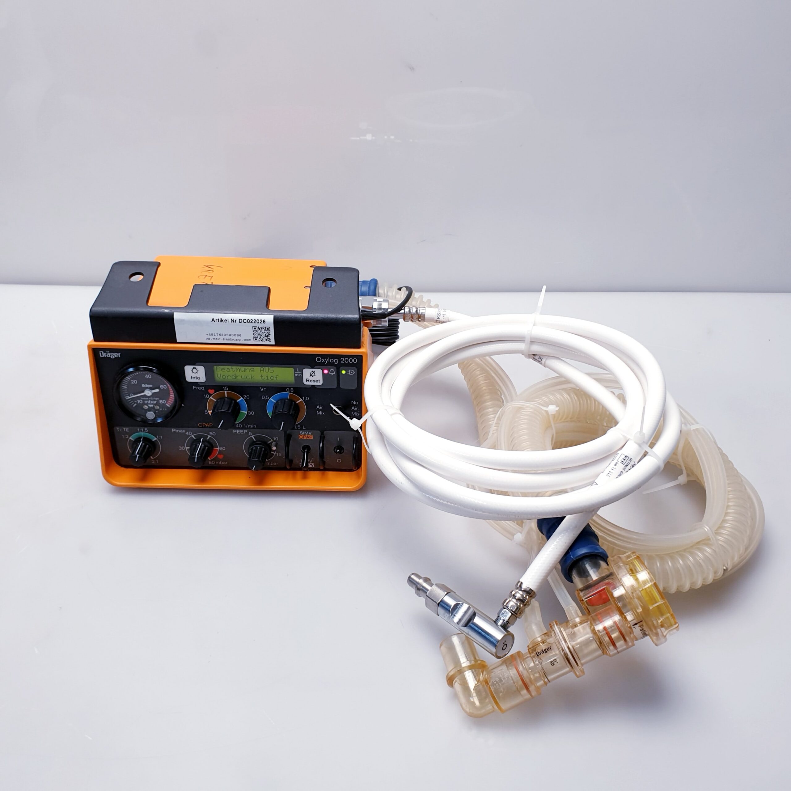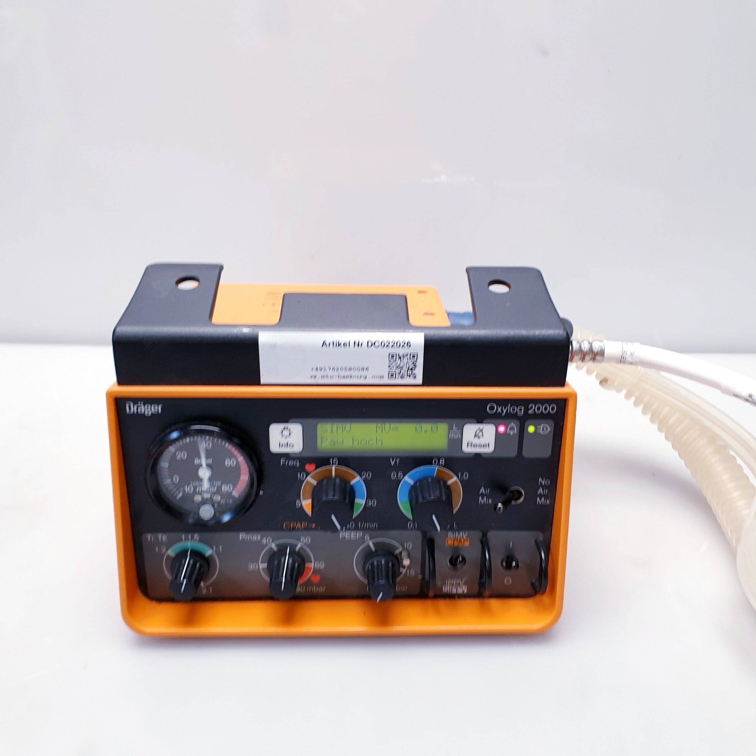 Das Dräger Oxylog 2000 ist ein bewährtes, kompaktes Beatmungsgerät, das speziell für den Einsatz im Rettungsdienst, bei Notfalleinsätzen und für den innerklinischen Transport entwickelt wurde. Es bietet sowohl volumenkontrollierte als auch unterstützte Beatmungsmodi für Erwachsene und Kinder.
