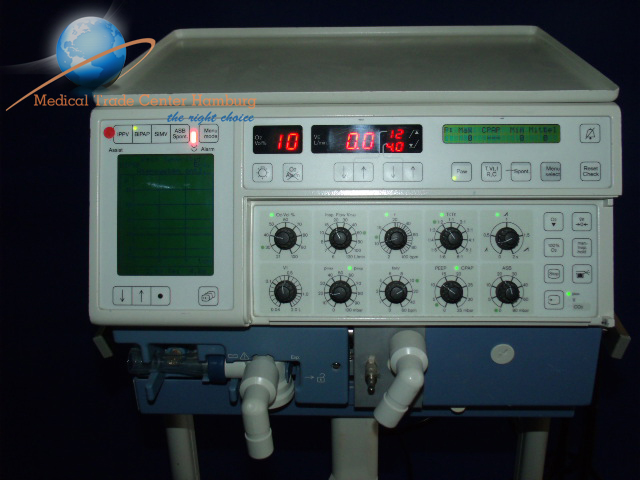 DRÄGER Evita 2 zeitgesteuertes, volumenkonstantes Beatmungsgerät ab 50 mL Atemvolumen. – kontrollierte, assistierte Beatmung IPPV, IPPV\Assist, – synchronisierte intermittiertende mandatrorische Beatmung SIMV, – die mandatorische Minutenvolumen-Ventilation MMV, – Spontanatmung unter positivem Atemwegsdruck CPAP, BIBAP, gebraucht