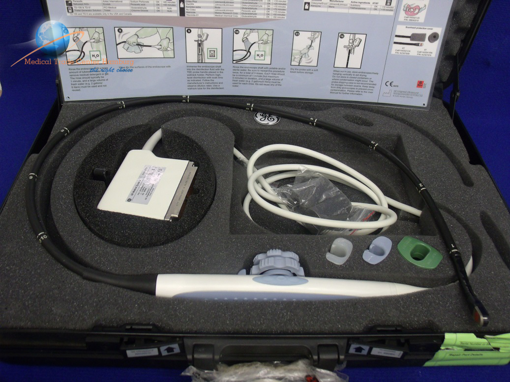 The GE 6TV ultrasound transducer probe which is compatible with GE Logiq 5, 7, 9 and Vivid 3, 7 ultrasound systems.