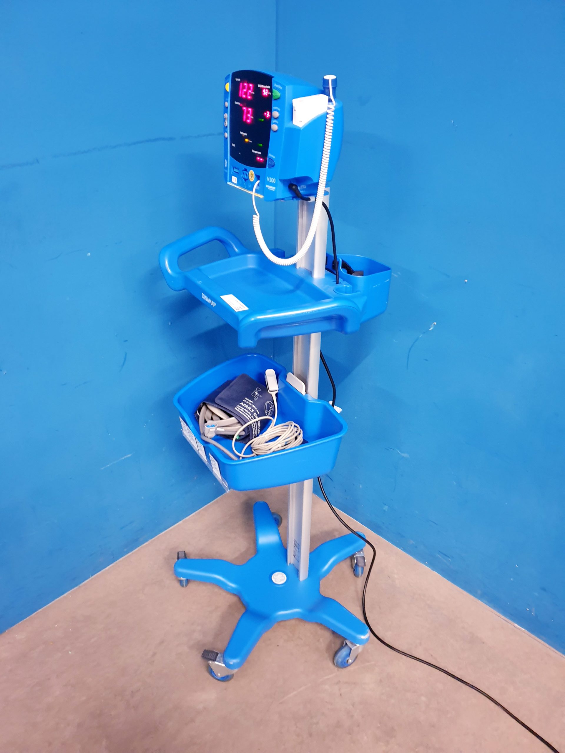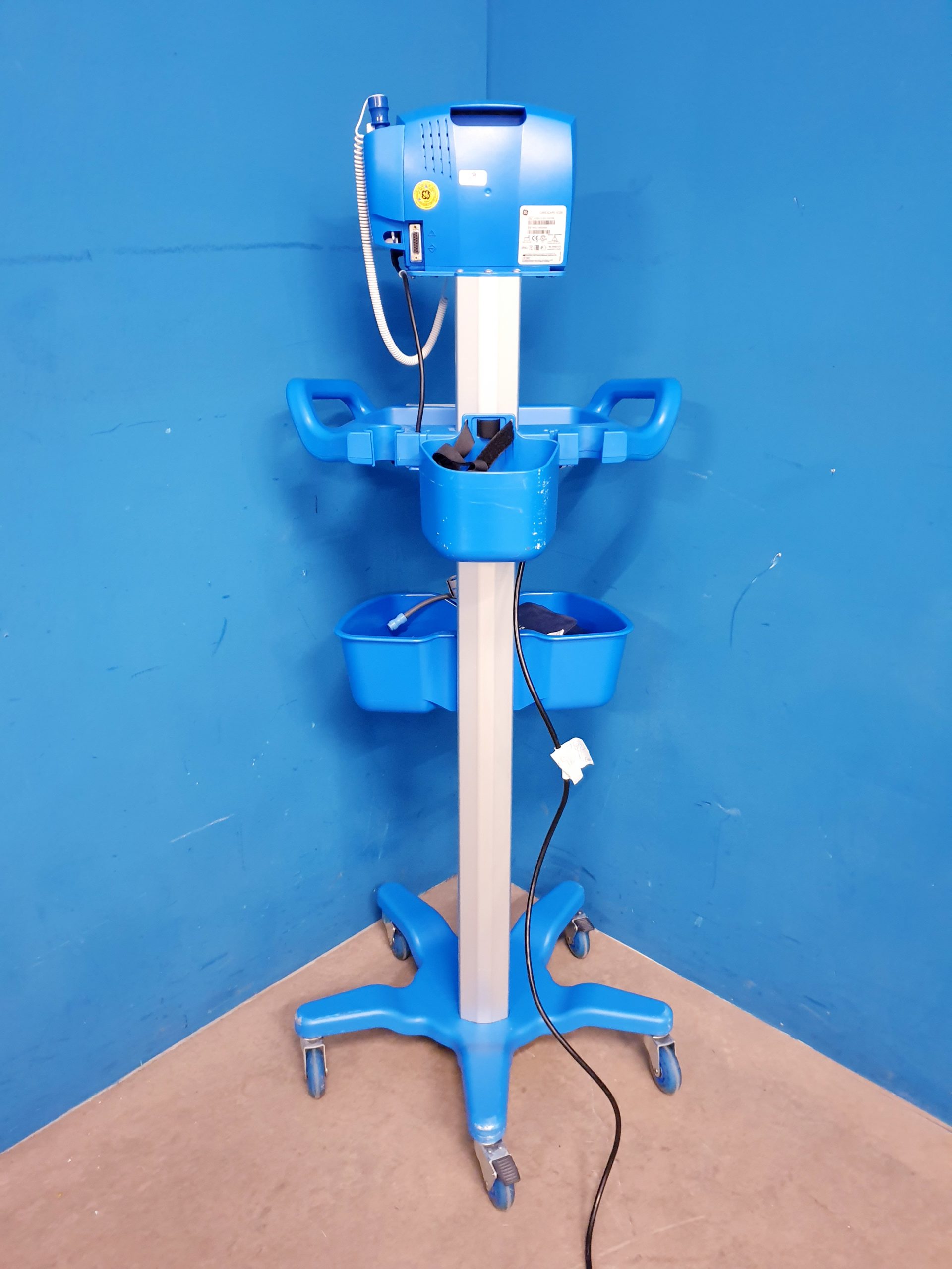 - Mobilität: Das kompakte und leichte Design erlaubt einen flexiblen Einsatz sowohl an der Patientenliege als auch für den Transport innerhalb der Klinik.