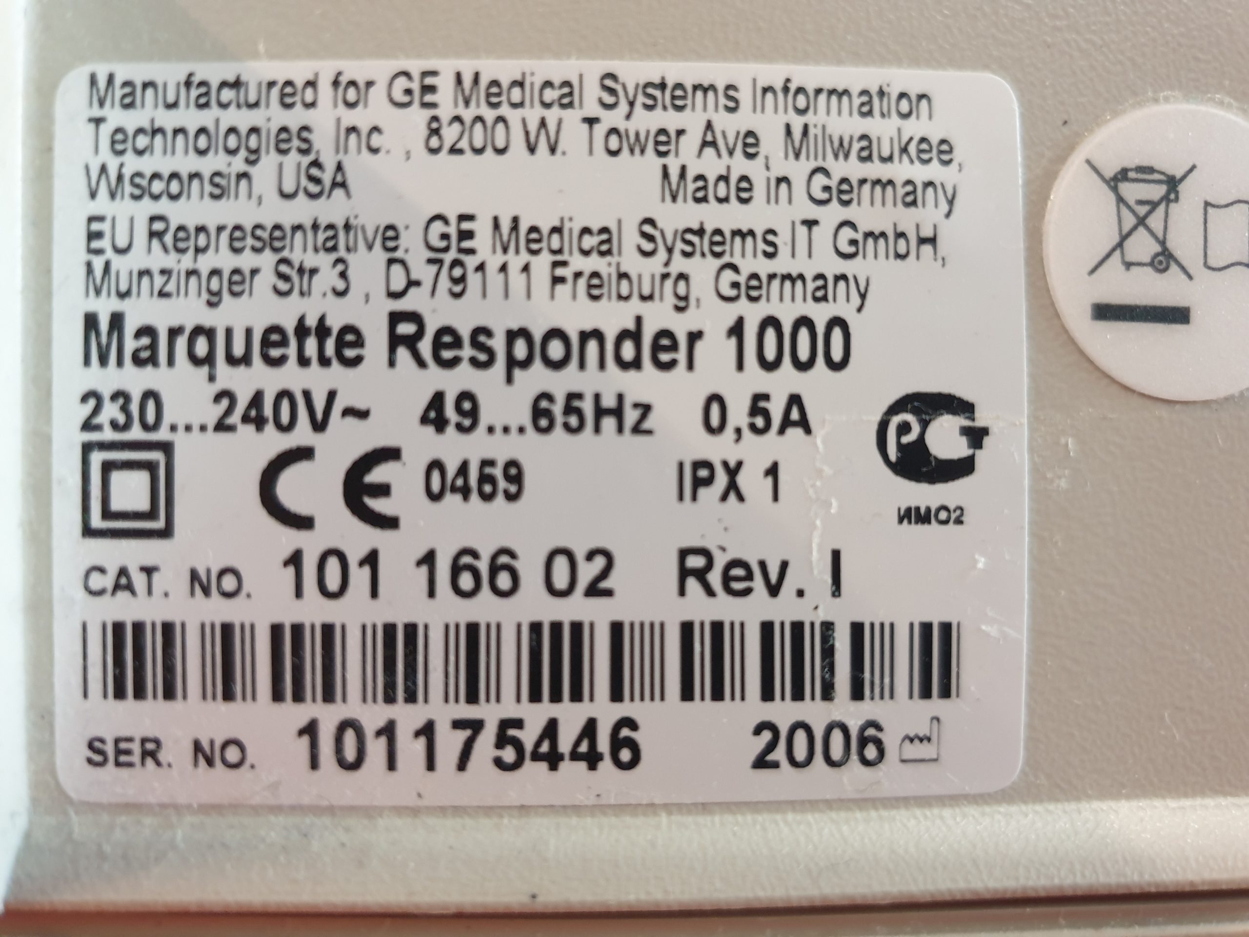 GE Healthcare Hellige Marquette Responder 1000 Defibrillator – Netzbetrieb – Akkuleistung ist uns unbekannt–inkl. 19 % MwSt. zzgl. Versandkosten