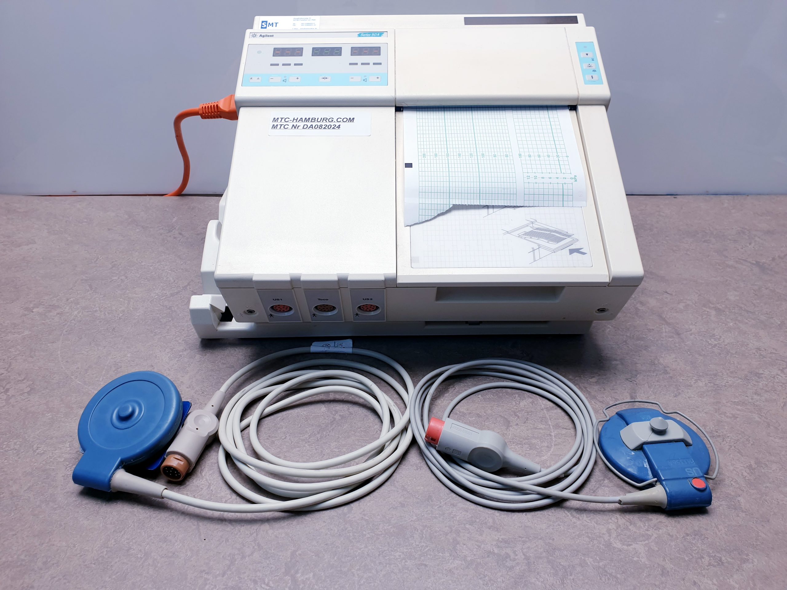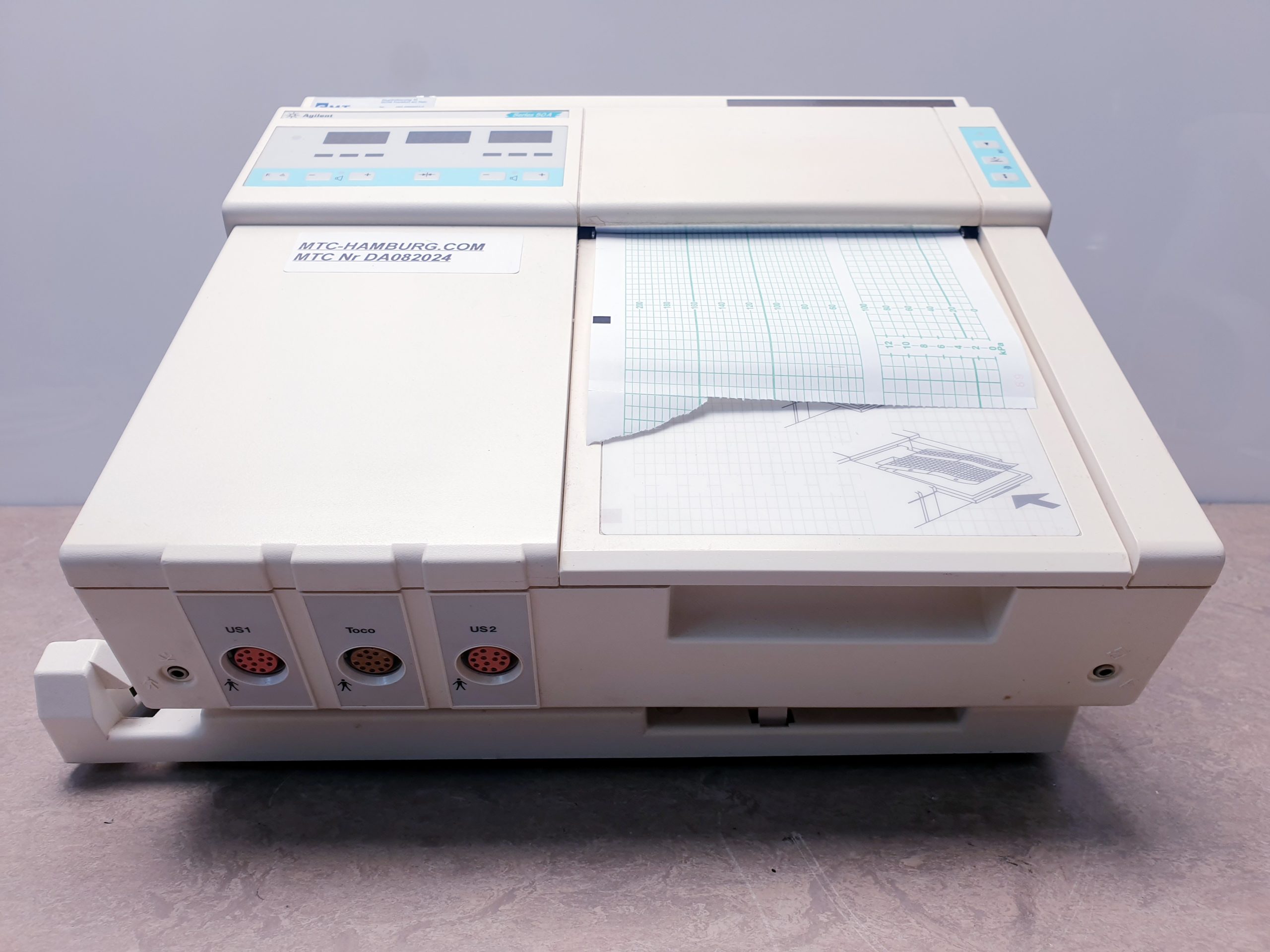 Der HP Agilent 50A CTG (Cardiotokograph) ist ein medizinisches Gerät, das zur Überwachung der fetalen Herzfrequenz und der Wehentätigkeit während der Geburt eingesetzt wird. Es kombiniert verschiedene Funktionen, um eine umfassende Überwachung der Mutter und des Fötus zu ermöglichen.