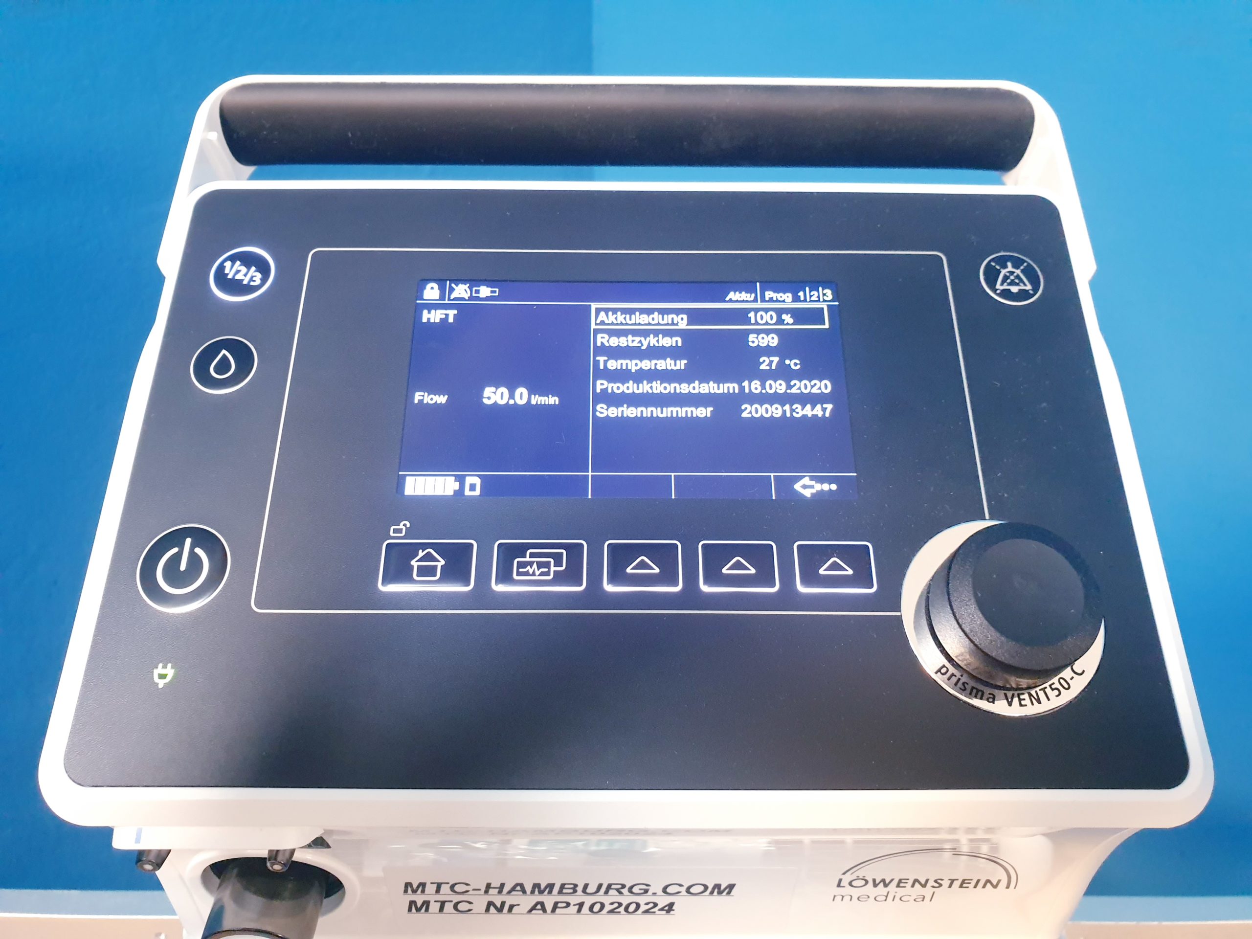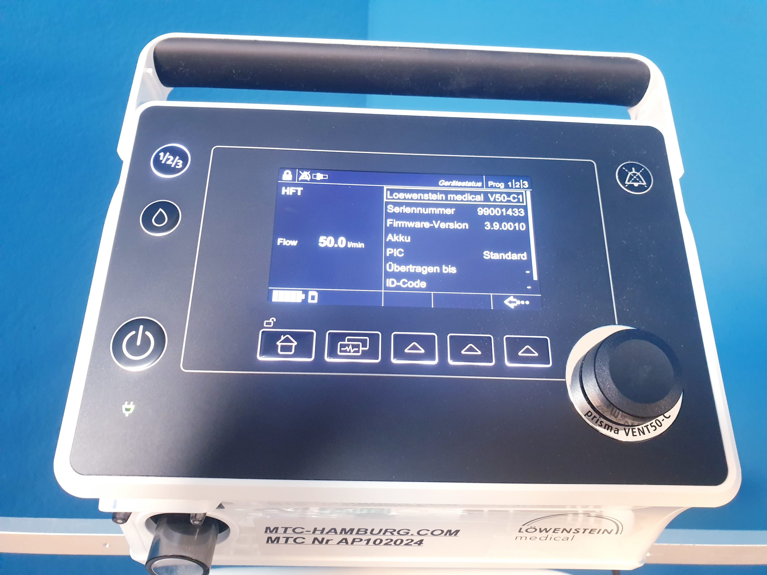 - Datenmanagement: Der VENT 50-C ermöglicht die Speicherung von Patientendaten und Beatmungsparametern zur späteren Analyse oder Dokumentation.