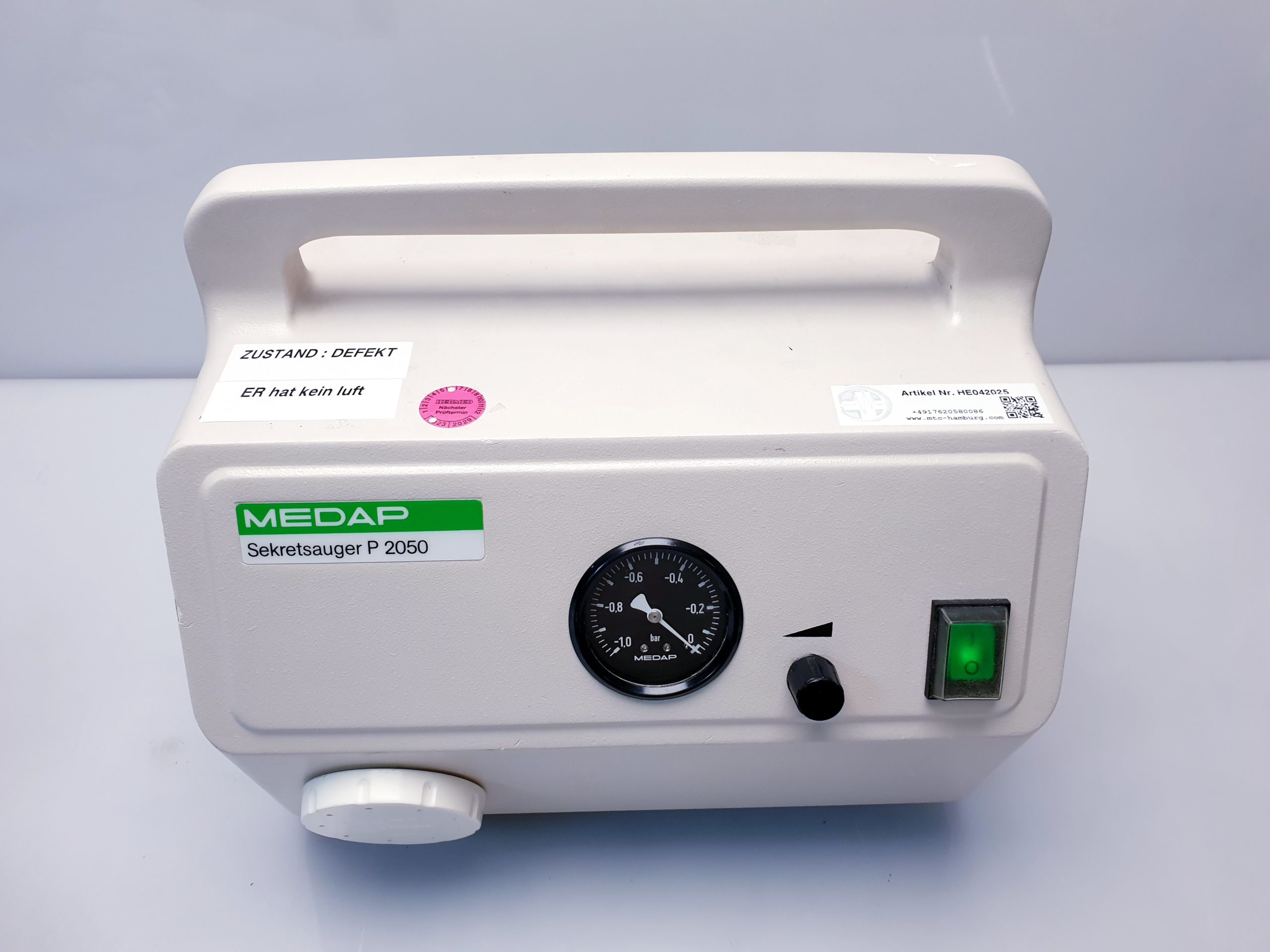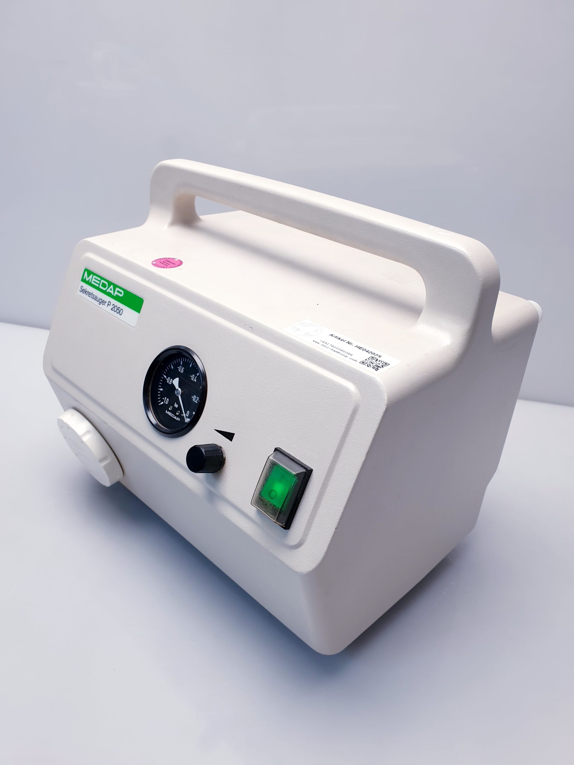 Der MEDAP Sekretsauger P 2050 ist ein leistungsfähiges, medizinisches Gerät zur Absaugung von Sekreten aus den Atemwegen. Entwickelt für den Einsatz in Kliniken, Pflegeeinrichtungen und im häuslichen Umfeld, gewährleistet dieser Sekretsauger eine zuverlässige und sichere Entfernung von Sekreten, um die Atemwege frei zu halten und die Atmung des Patienten zu erleichtern.