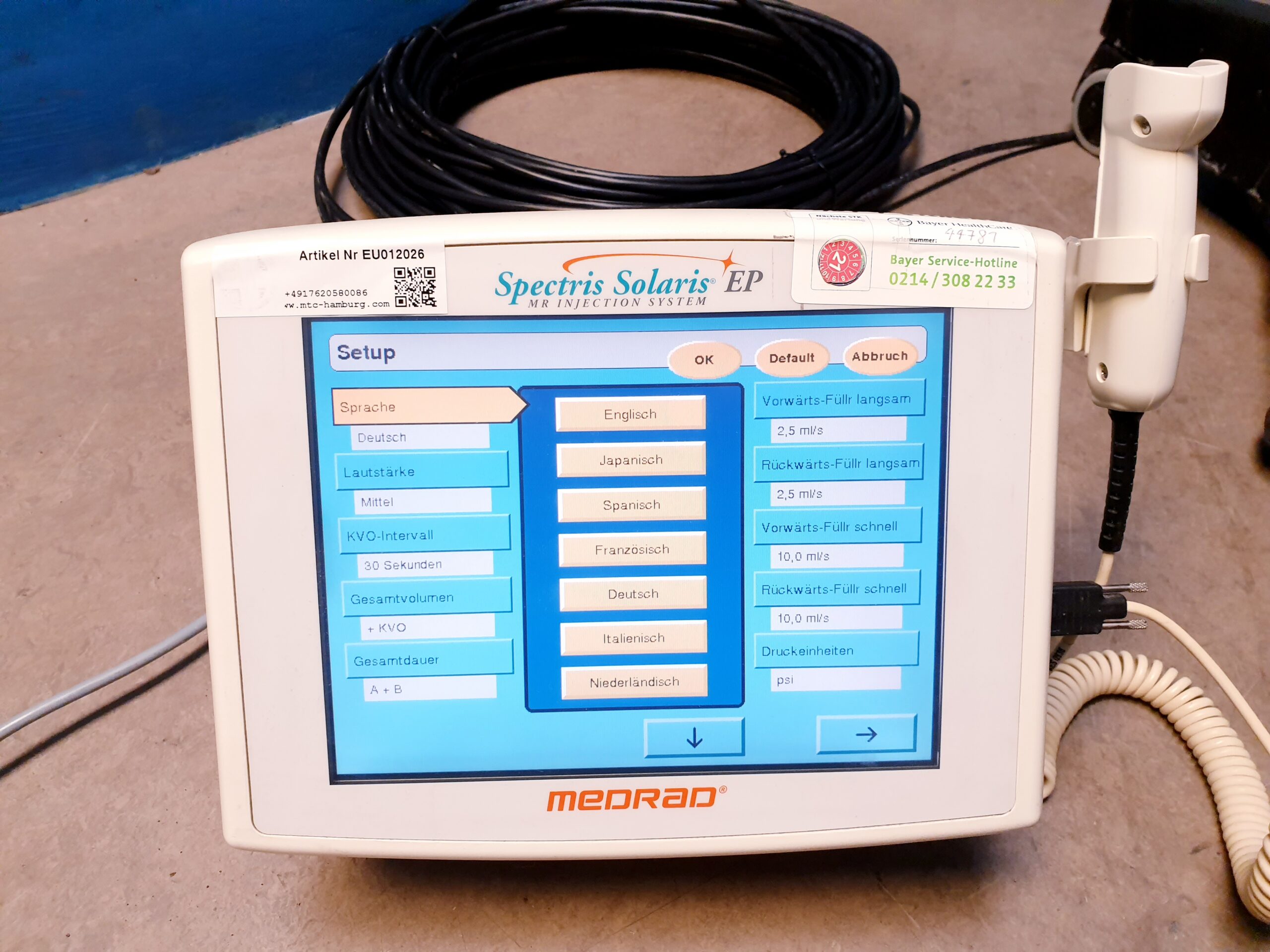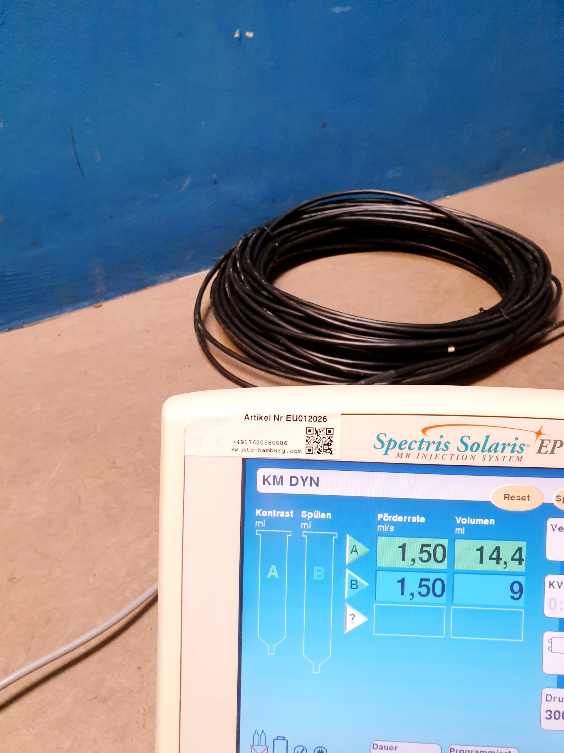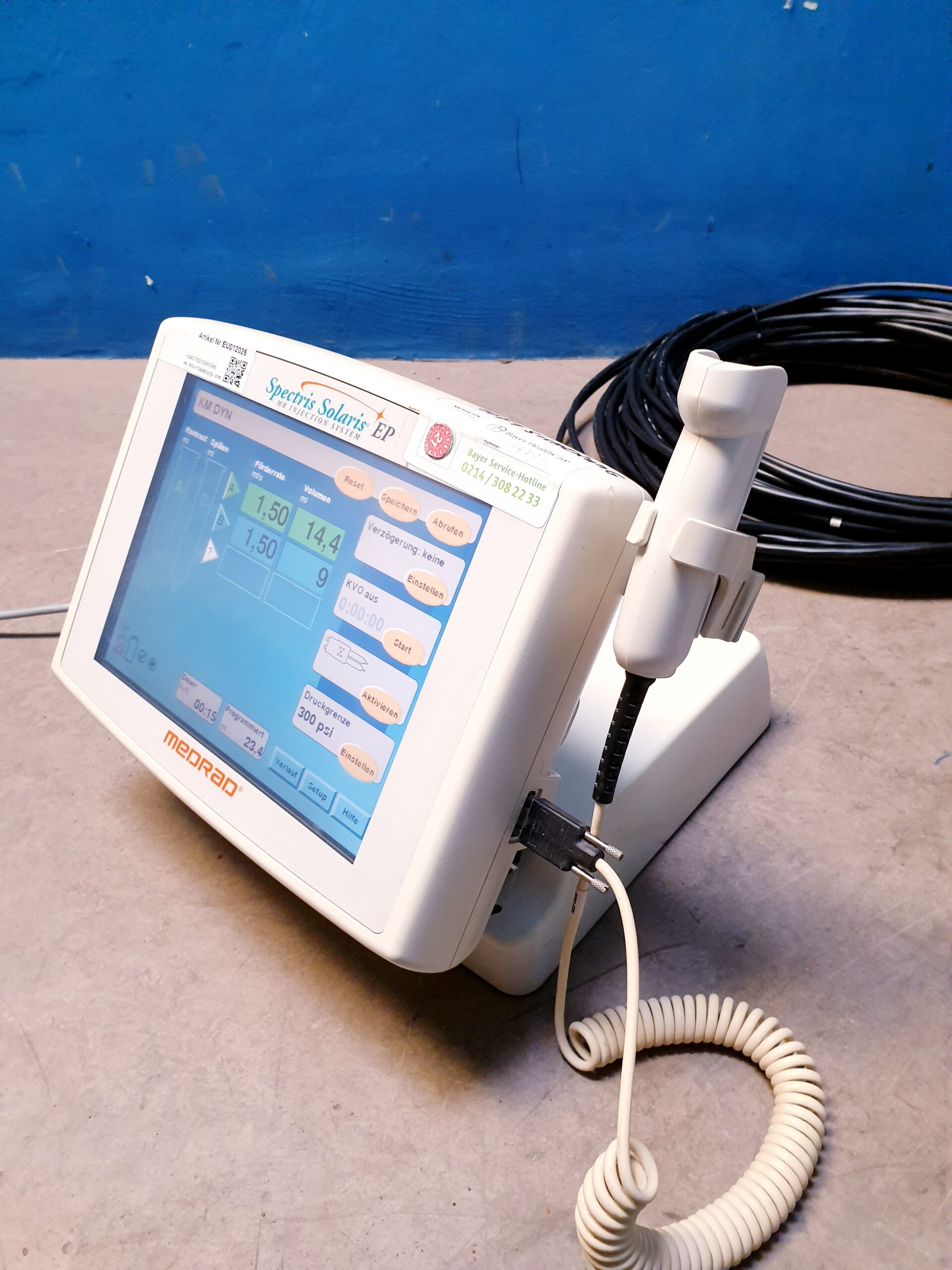 - Benutzerfreundlichkeit: Das Medrad Spectris Solaris verfügt über ein intuitives Benutzerinterface, das es Radiologen und medizinischem Personal erleichtert, die Injektionen zu planen und durchzuführen.