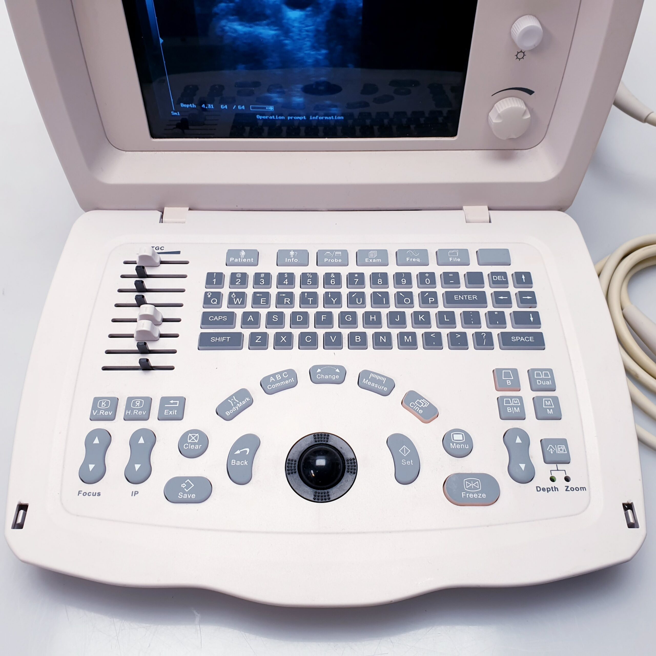 Das Mindray DP-2200 Plus ist ein kompaktes, digitales Schwarz-Weiß-Ultraschallsystem, das häufig mit einer 7.5 MHz Linear-Sonde (z. B. Modell 75L38EB) für oberflächennahe Untersuchungen (Gefäße, kleine Organe) eingesetzt wird.