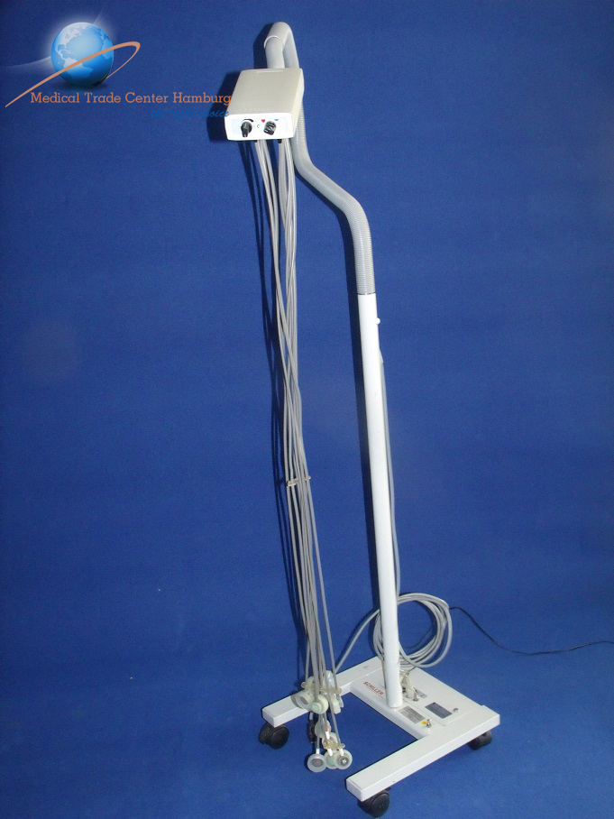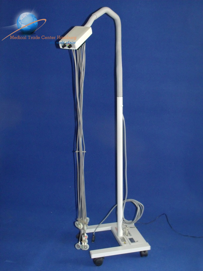 Fahrbares Fußgestell mit integrierter Pumpe und Stativrohr.