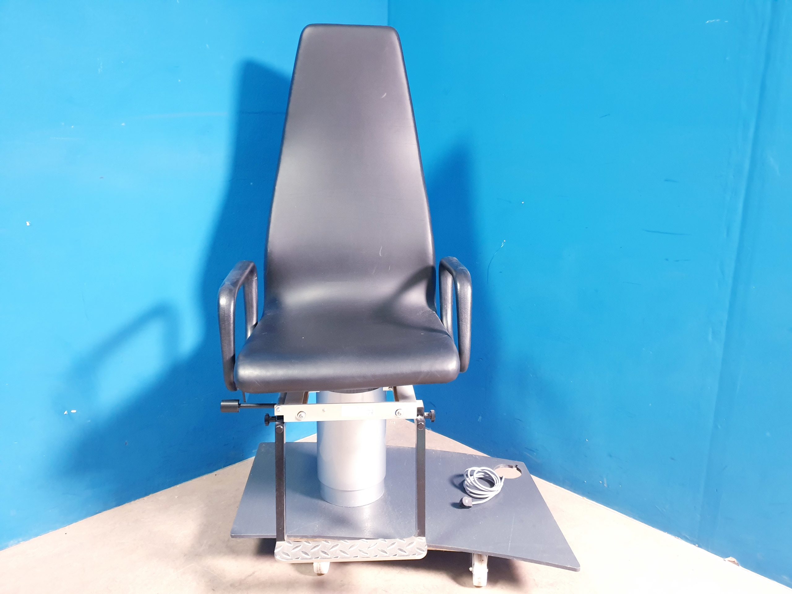- Elektrische Verstellbarkeit: Höhenverstellung sowie Neigung von Sitz und Rückenlehne lassen sich stufenlos und per Knopfdruck einstellen, um eine optimale Positionierung des Patienten zu gewährleisten.