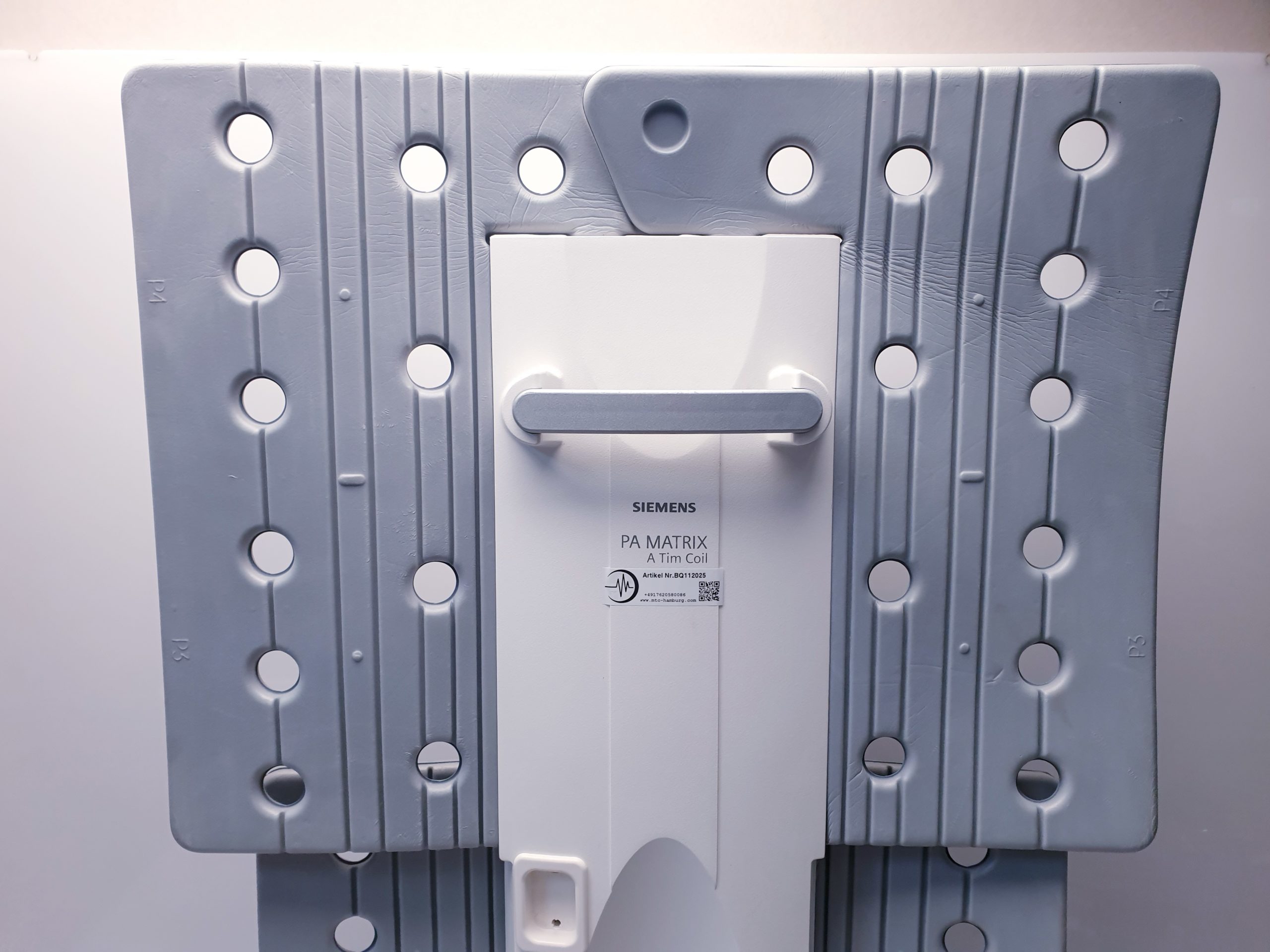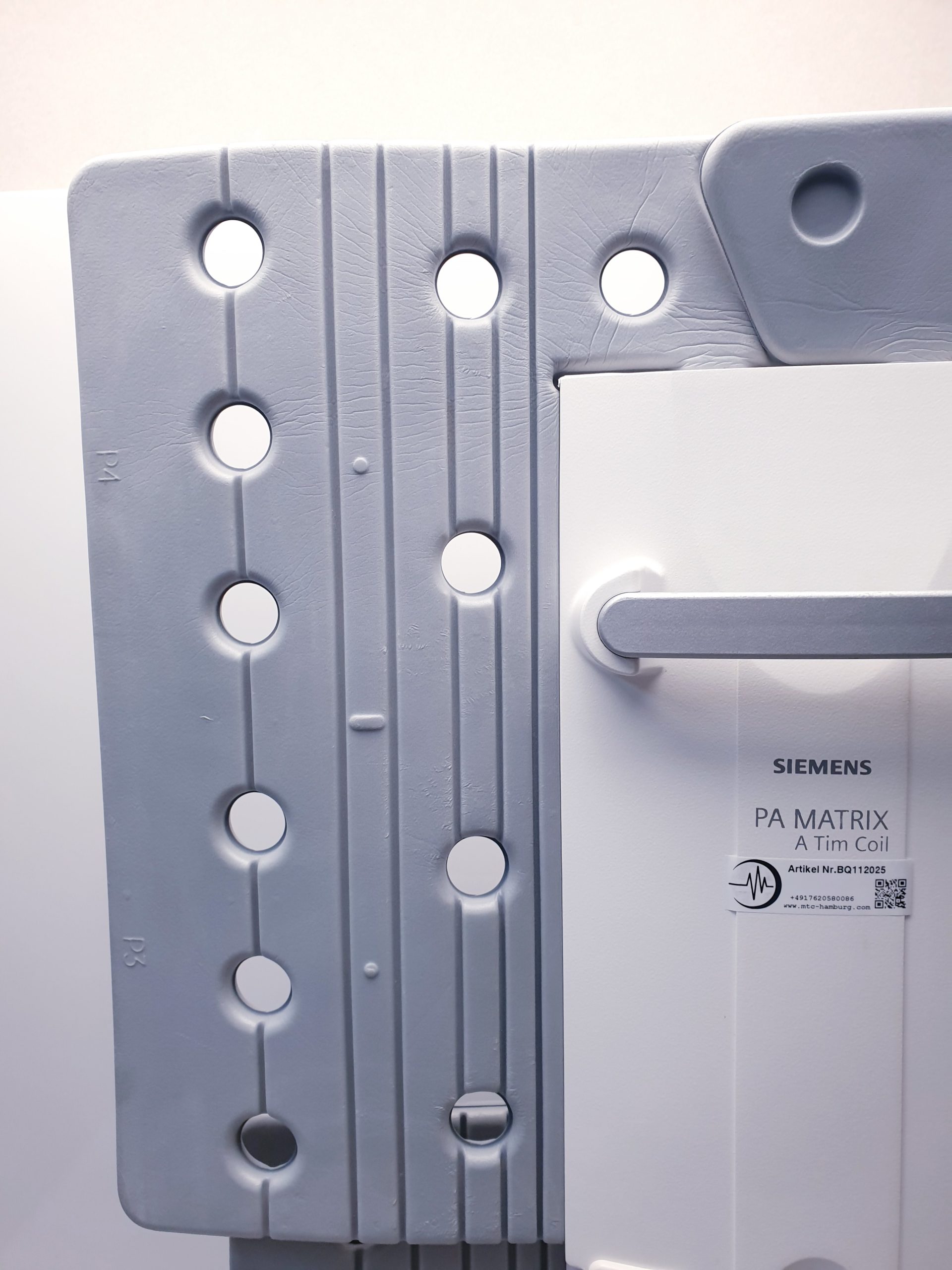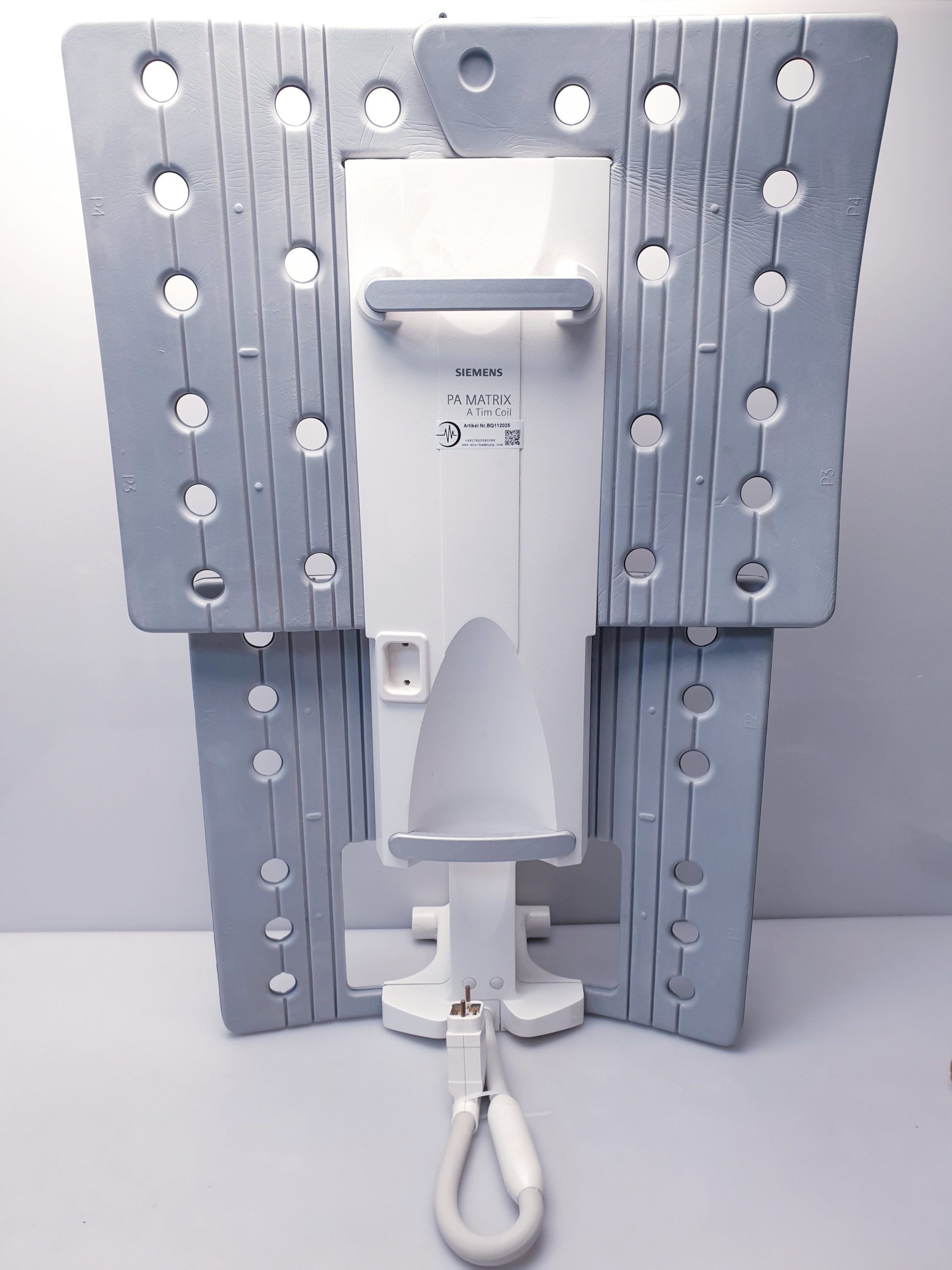 Die Siemens PA-Matrix A TIM Coil (Bestellnummer 07579910) ist eine hochentwickelte Empfangsspule, die speziell für den Einsatz in der Magnetresonanztomographie (MRT) konzipiert wurde. Sie gehört zur Serie der TIM (Total Imaging Matrix) Coils, welche für ihre hervorragende Bildqualität und Flexibilität bekannt sind.