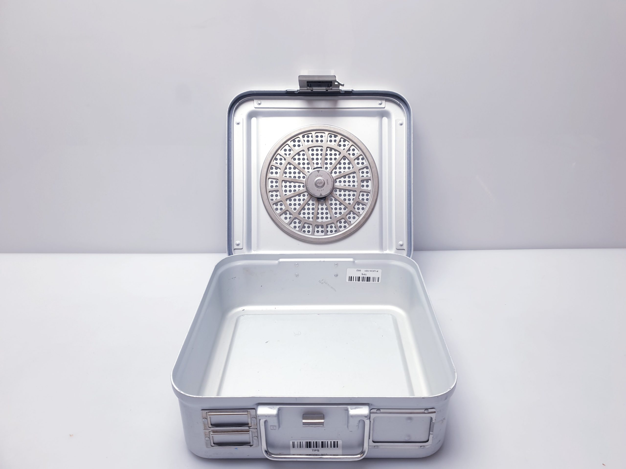 - Sichere Handhabung: Der Sterikontainer verfügt über einen zuverlässigen Verschlussmechanismus, der ein unbeabsichtigtes Öffnen verhindert und somit die Sterilität der Instrumente bewahrt.