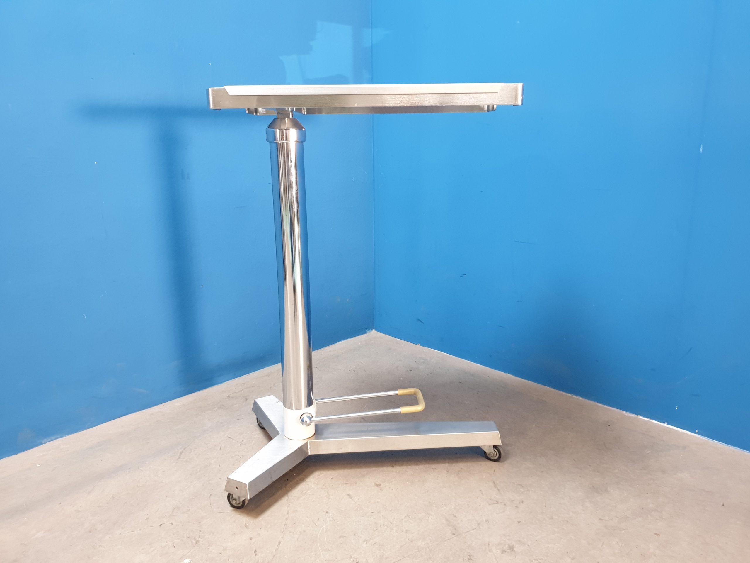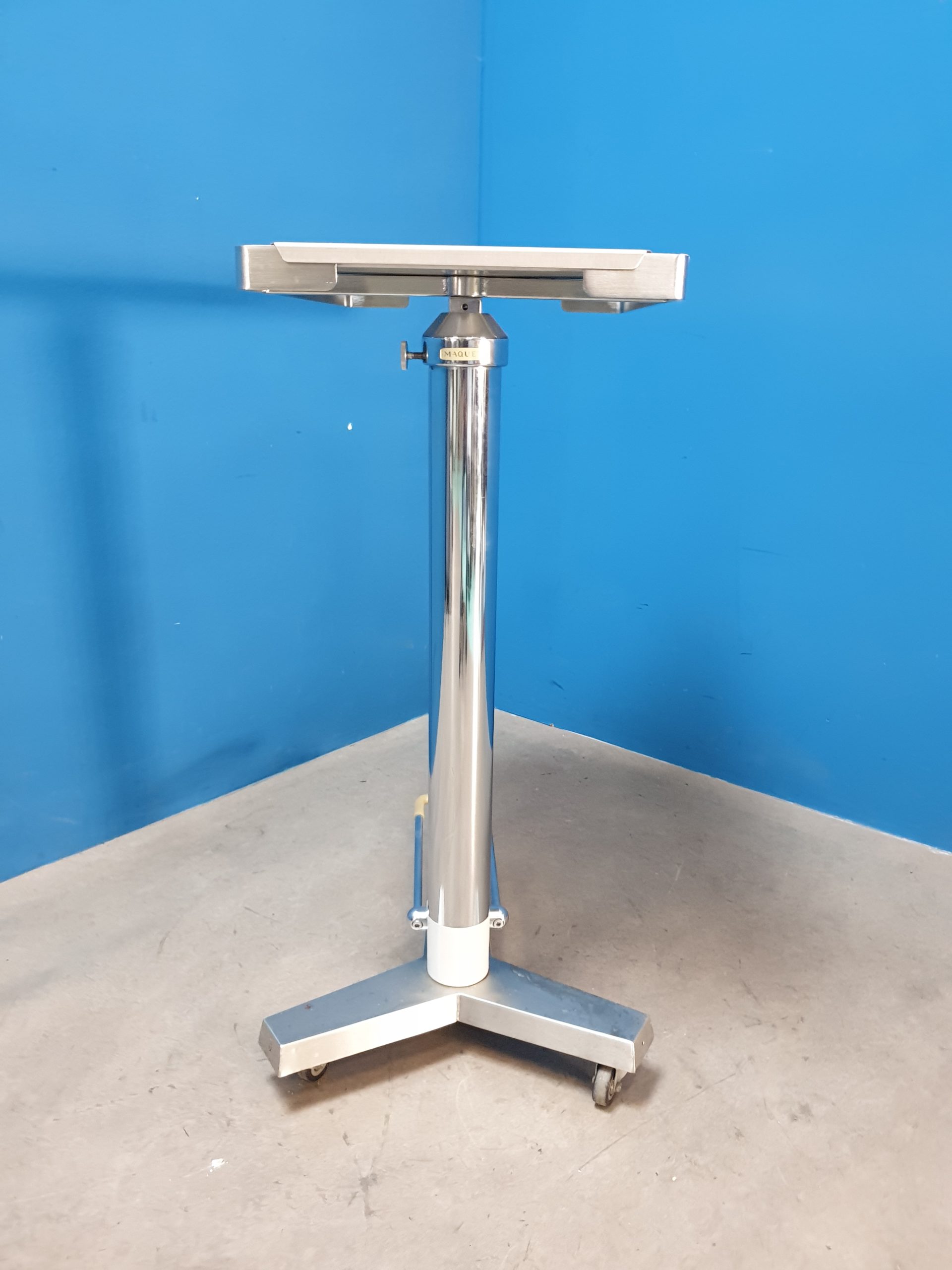 Maquet Ölpump-Instrumentenzureichtisch, aus Chromnickelstahl, fahrbar.
