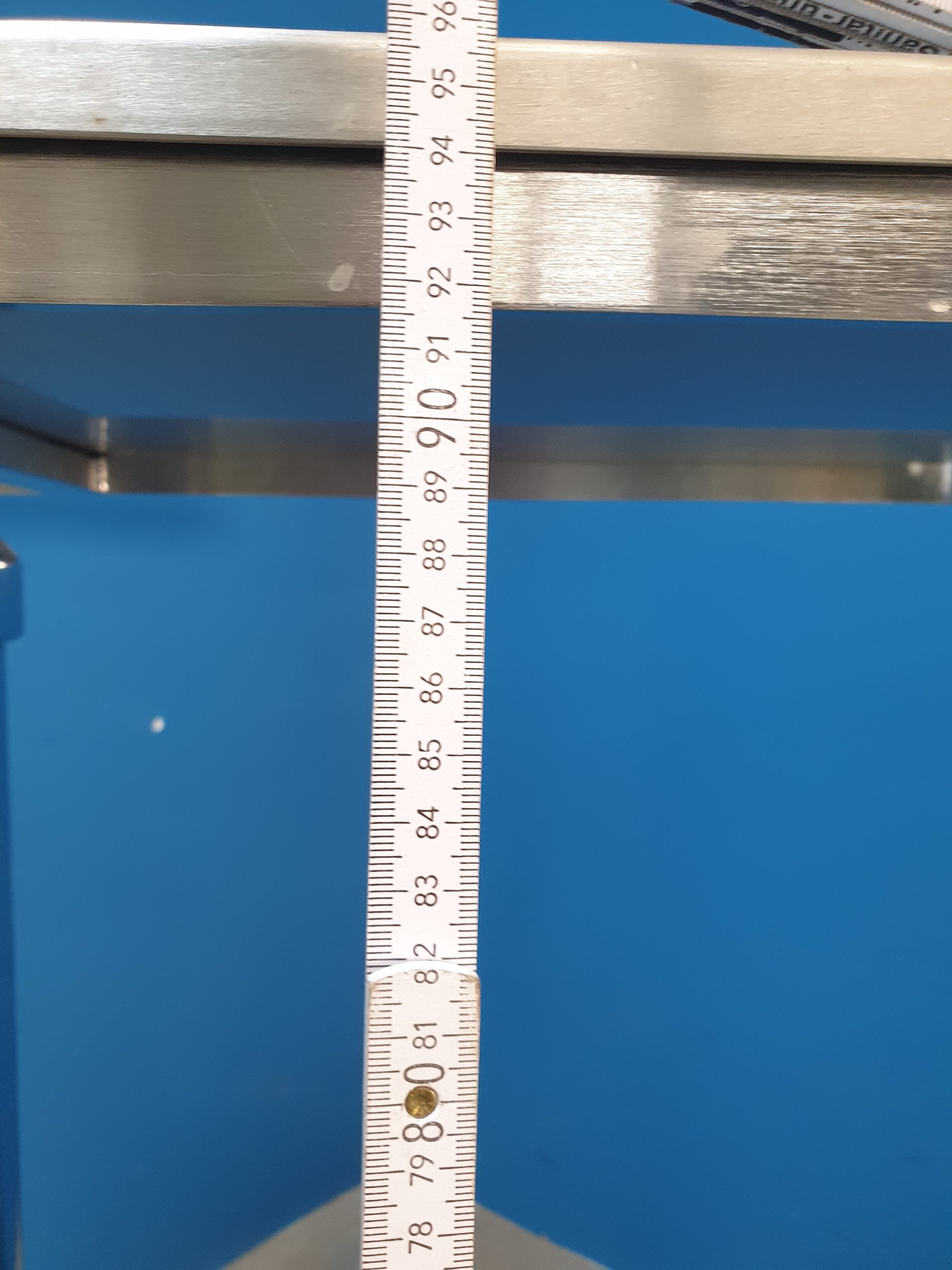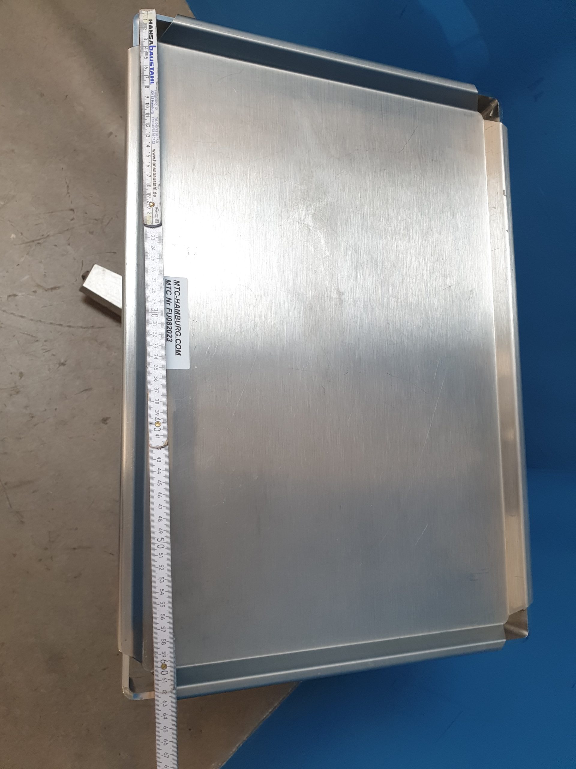 Tischplatte und Gestell aus Cr-Ni-Stahl. Rollen 50 mm Durchmesser, elektrisch leitend.