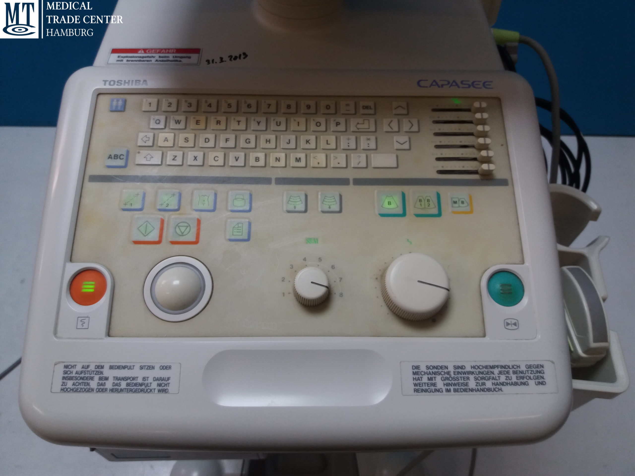 Das Toshiba Capasee SSA-220a Ultraschallgerät unterstützt Mediziner dabei, schnelle und präzise Diagnosen zu stellen, indem es klare Bildinformationen in Echtzeit liefert. Die Kombination aus qualitativ hochwertiger Sonde und leistungsfähiger Hardware macht es zu einem unverzichtbaren Werkzeug für die moderne medizinische Bildgebung.