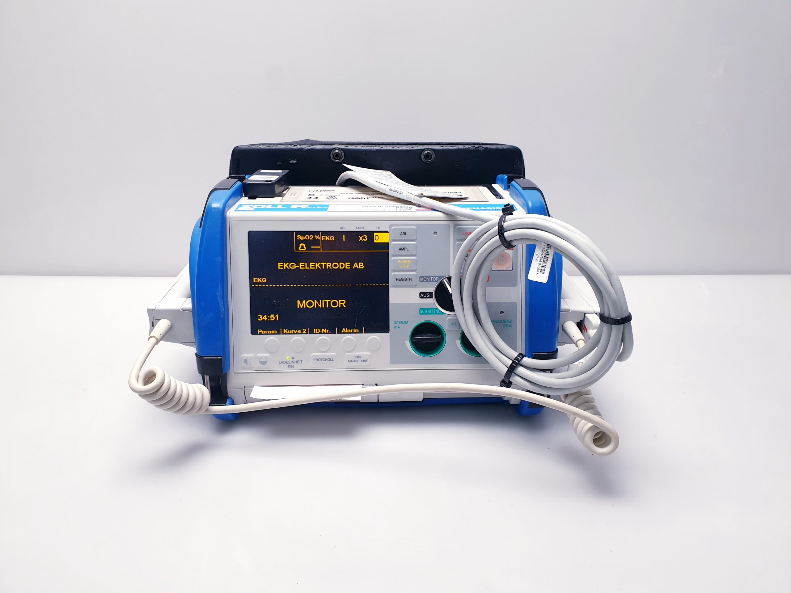 - Großzügiges, gut ablesbares Display: Ein hochauflösendes Farbdisplay ermöglicht die klare Darstellung von EKG-Wellenformen, Vitalparametern und Therapieanweisungen, was die Bedienung auch unter stressigen Bedingungen erleichtert.